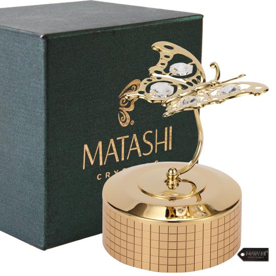 24K Gold Plated Music Box with Crystal Studded Butterfly Figurine by Matashi