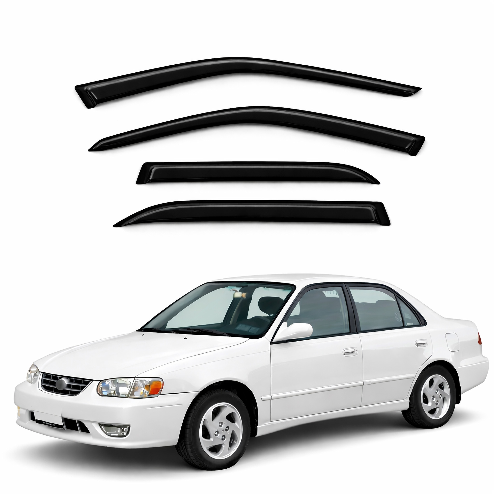 This Vent visors are the most popular accessory for all vehicles. Made of reinforced acrylic in dark smoke color with improved 2.0 mm thinkness. It can help to reduce heat buildup in parked vehicles by allowing air in when partially open. The vent visor keeps rain out and lets fresh air in vehicles. Easy installation with approved tape. Custom made fit each model(Please check compatibility table on this listing). Each sold for One complete set. Coupe models(2 Door/ Hatchback) contains 2 vent shades visors. The Sedans, wagons and SUVs contain 4 vent shades(Please check on listing title and picture about 2pcs or 4pcs visor for this listing). Spec & Features: