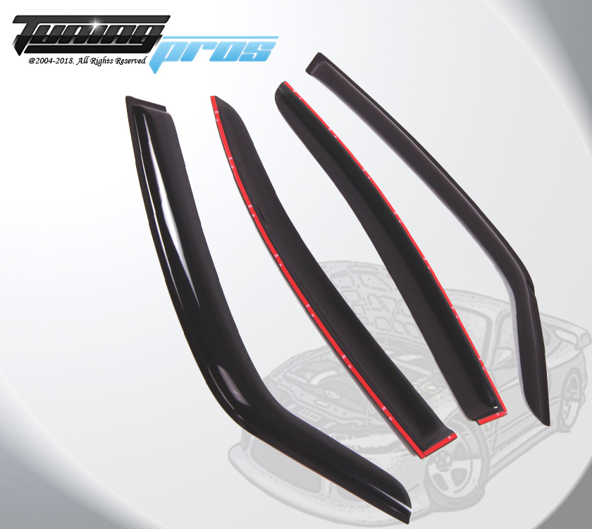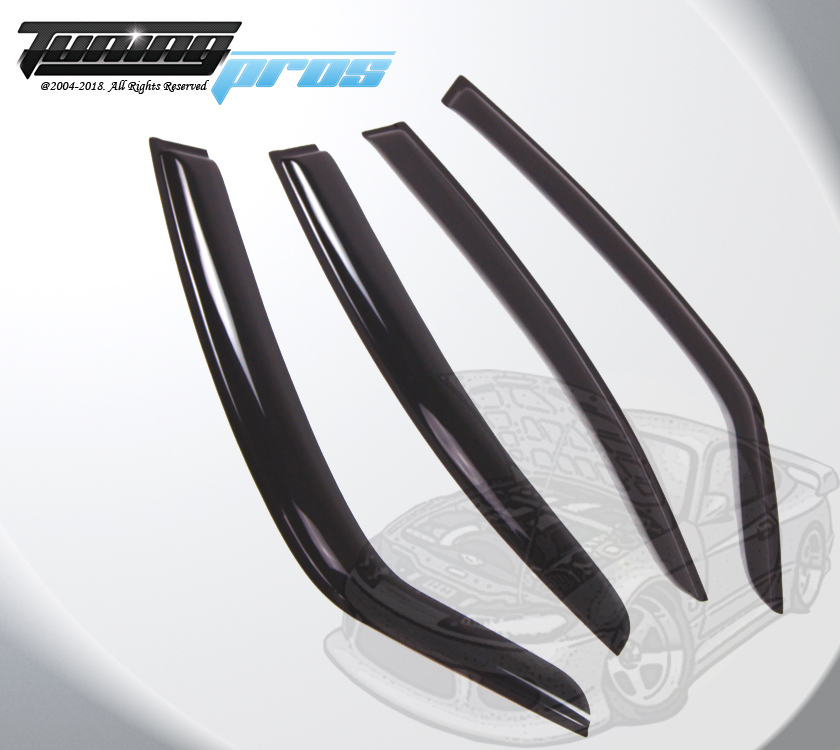 This vent visors are the most popular accessory for all vehicles. Made of reinforced acrylic in smoke tinted color. It can help to reduce heat buildup in parked vehicles by allowing air in when partially open. The vent visor keeps rain out and lets fresh air in vehicles. Easy installation with approved tape. Custom made fit each model (Please check compatibility table on this listing). Each sold for One complete set. Coupe models (2 Door/ Hatchback) contains 2 vent shades visors. The Sedans, wagons and SUVs contain 4 vent shades visors (Please check on listing title and picture about 2pcs or 4pcs visor for this listing). Spec & Features: