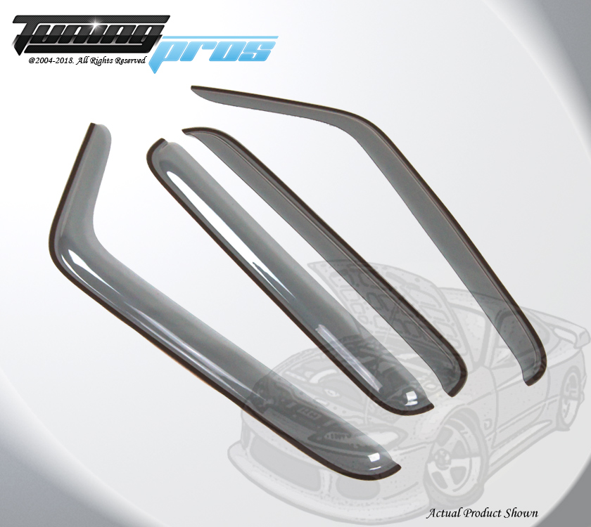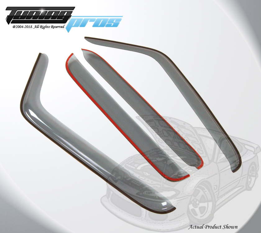 This vent visors are the most popular accessory for all vehicles. Made of reinforced acrylic in light grey color. It can help to reduce heat buildup in parked vehicles by allowing air in when partially open. The vent visor keeps rain out and lets fresh air in vehicles. Easy installation with approved tape. Custom made fit each model (Please check compatibility table on this listing). Each sold for One complete set. Coupe models (2 Door/ Hatchback) contains 2 vent shades visors. The Sedans, wagons and SUVs contain 4 vent shades visors (Please check on listing title and picture about 2pcs or 4pcs visor for this listing). Spec & Features: