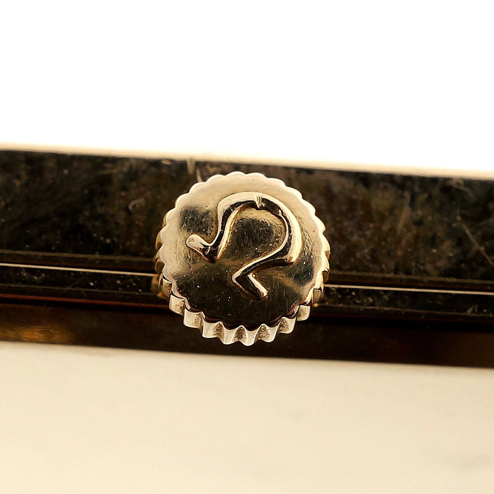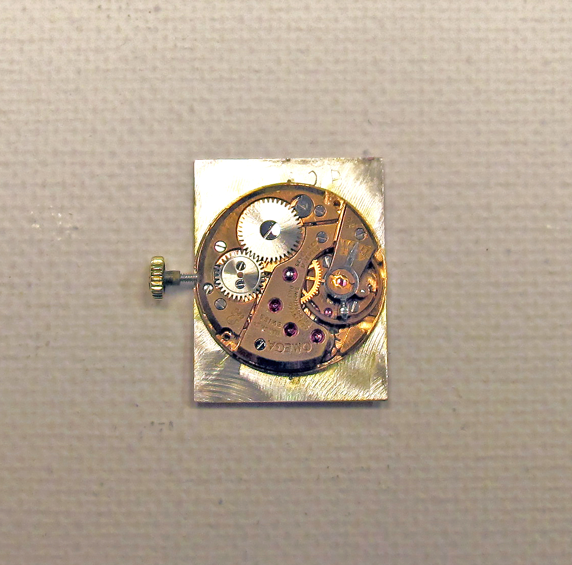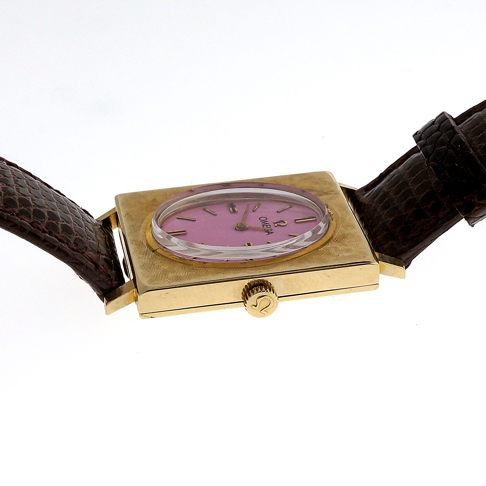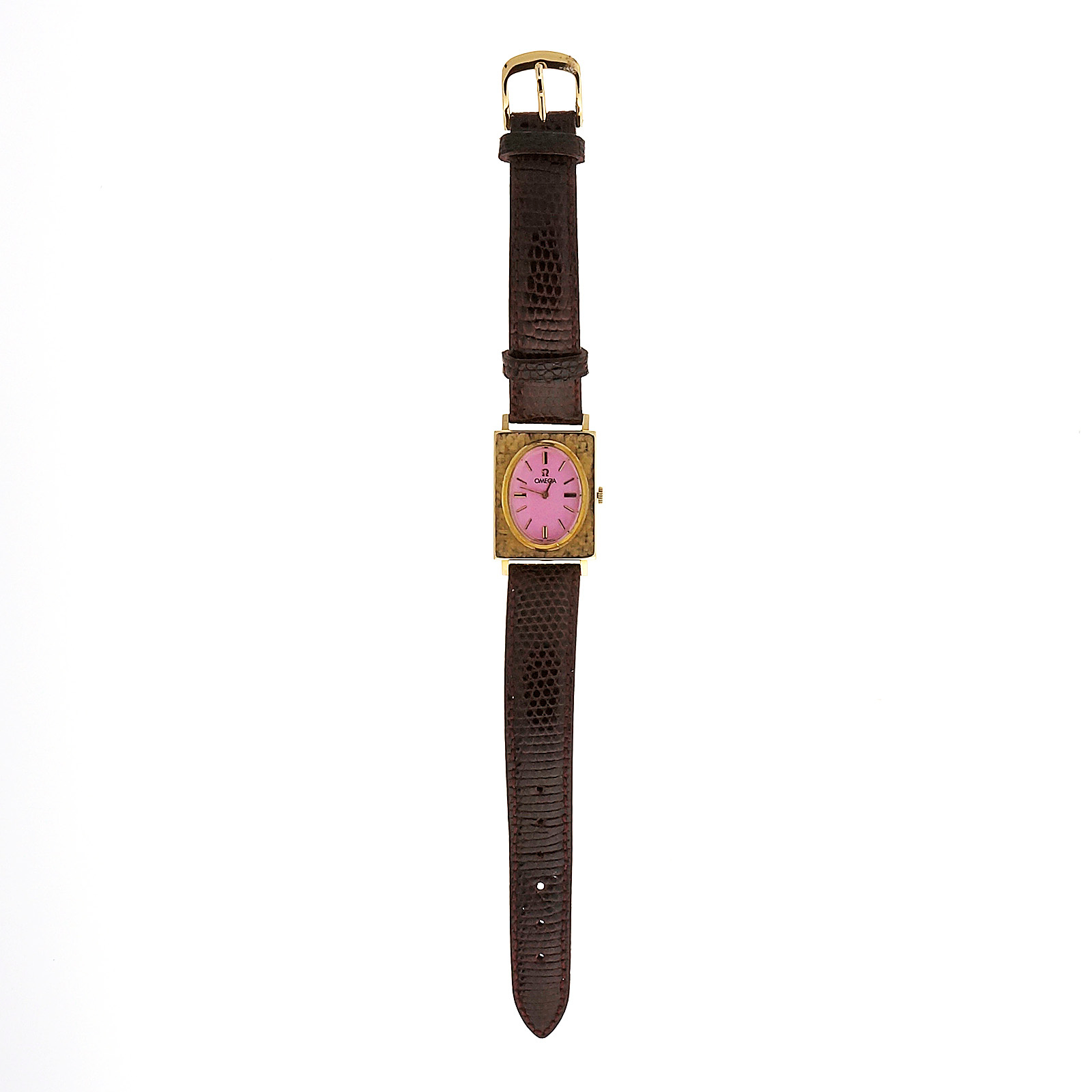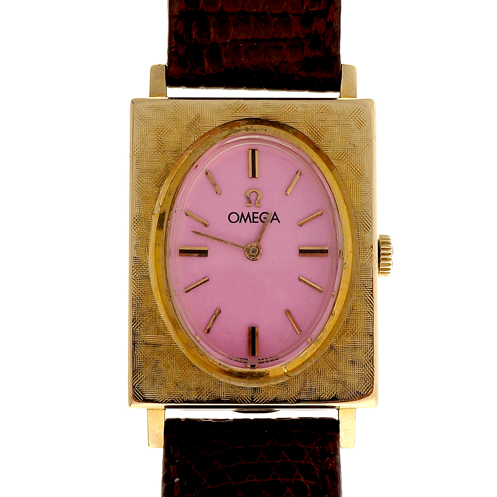 394-142-353Ladies Bright Pink 14k Gold Rectangular Omega © 1950