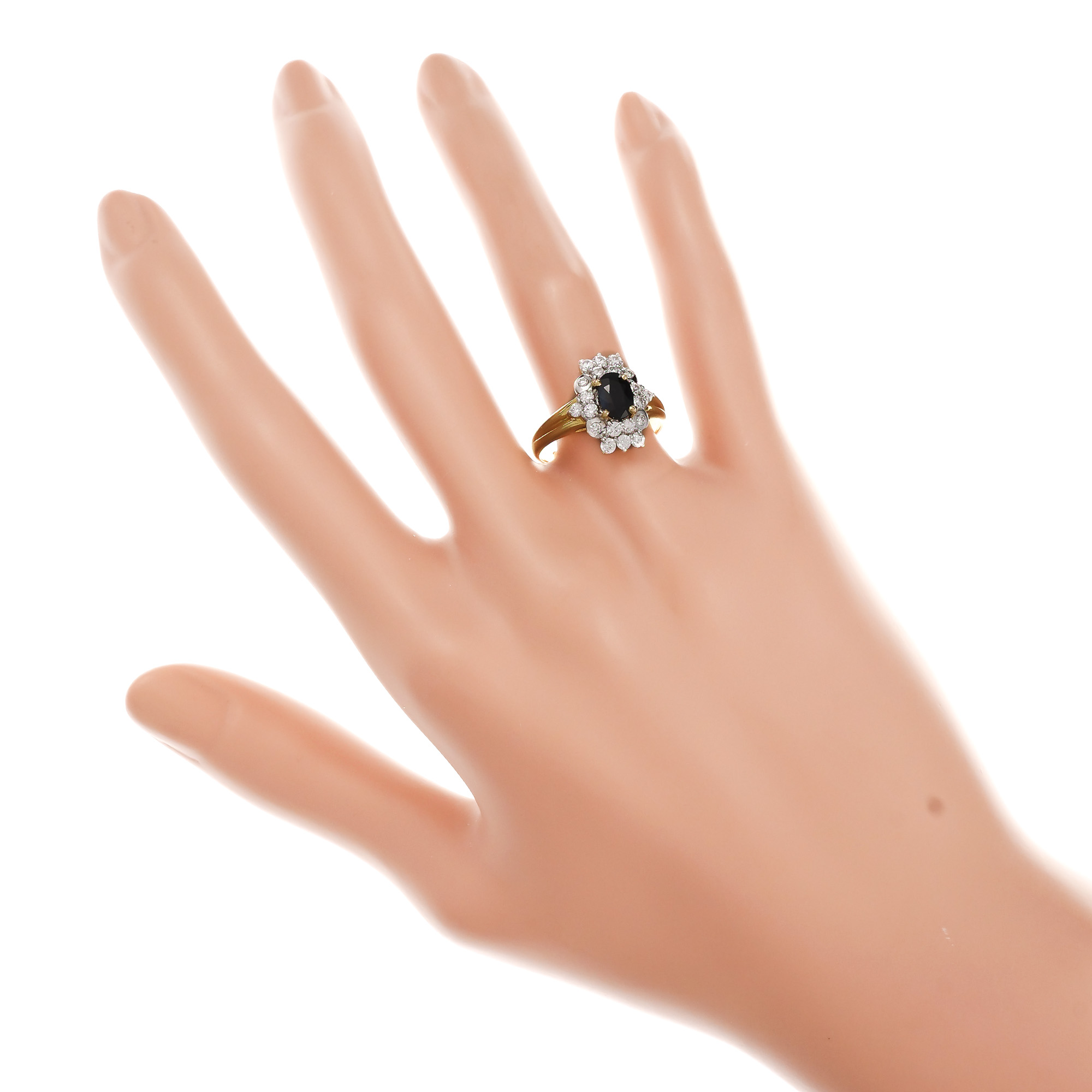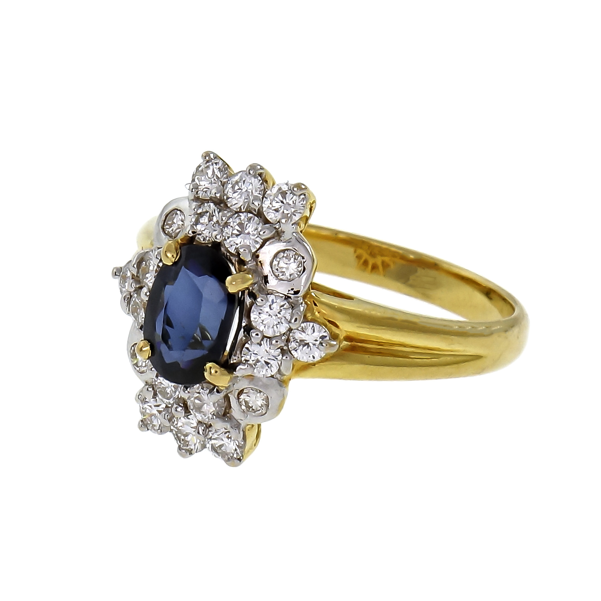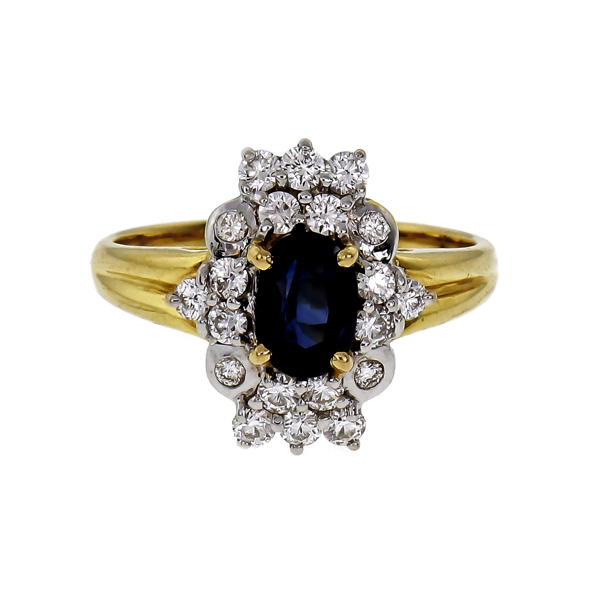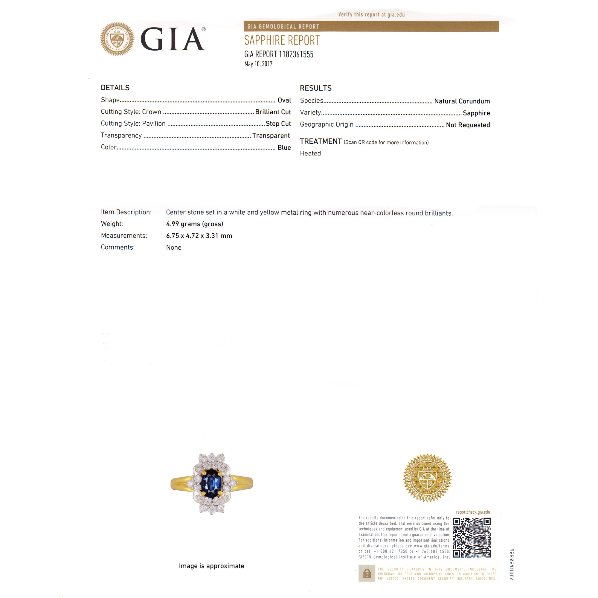Oval Sapphire Diamond Cluster Ring 20k Yellow & White Gold GIA Certified