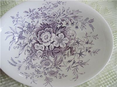 Wedgwood Cotswold purple floral transfer ware oval serving platter made in England. It is 9.5" X 12" and in excellent condition.