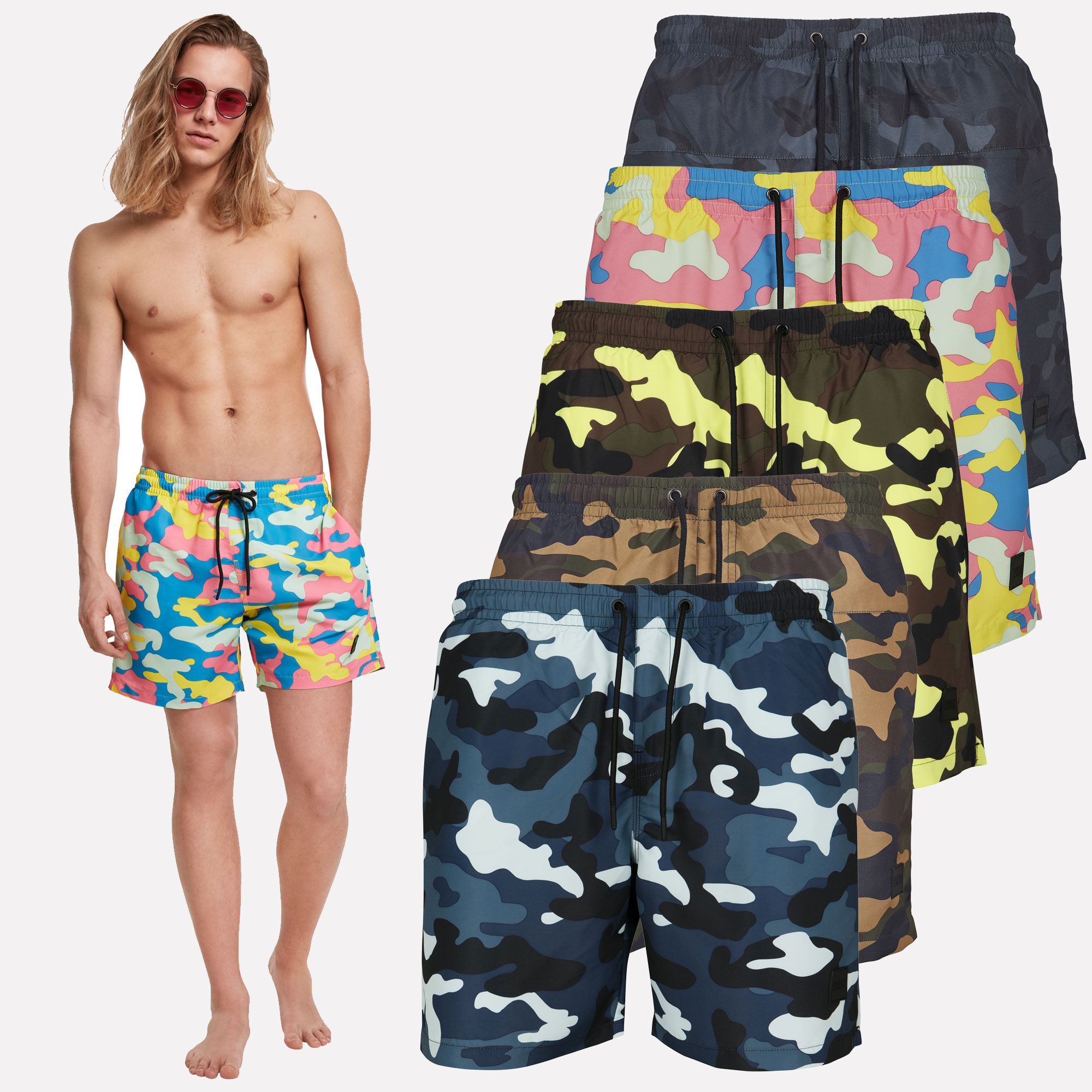 Die Camo Swimshorts sehen mit ihrem lässigen Schnitt und dem Allover-Camouflage-Print nicht nur gut aus,