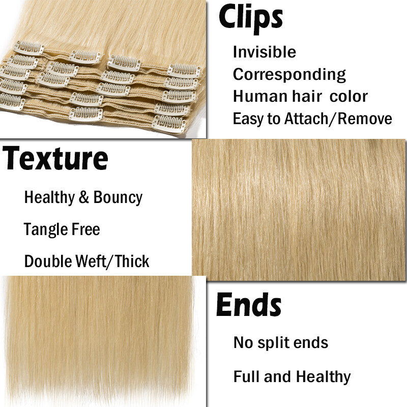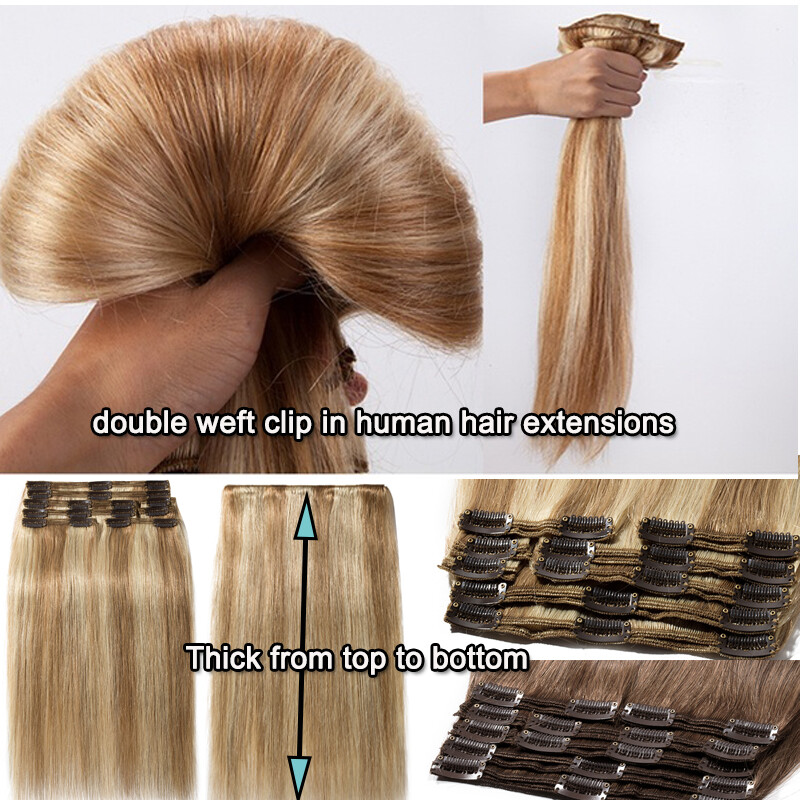 ▶Texture: Straight Double Weft Thick Clip-in Human Hair