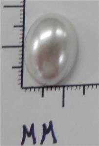 This is a flat back imitation pearl cabachon in white. Size is 13 x 18 mm oval. By the gross (144 PCS.) Many uses for art and jewelry projects. Just glue onto surface you wish to use. item # 71318