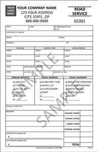 Roadside Service Form will be custom printed on 2 Part Carbonless Paper using black. Our custom printing for this towing invoices includes your company name, contact information and logo. Your forms will be sequentially numbering. This Towing Invoice form is designed for ease of use with check box sections listing the most common services provided by Road Side Service and Towing Companies.