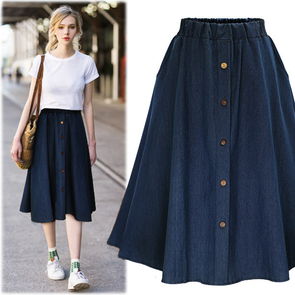Womens Jeans A-line High Waist Long Midi Denim Skirt Dress