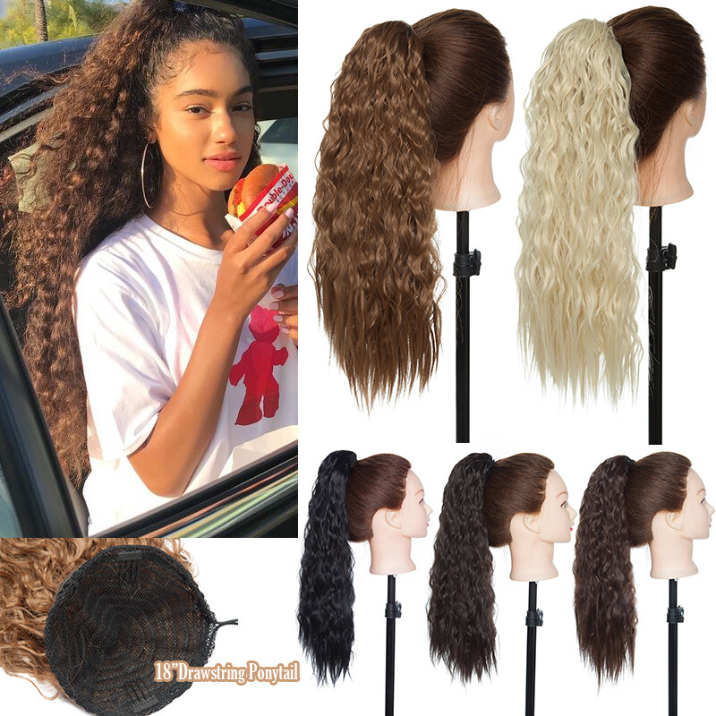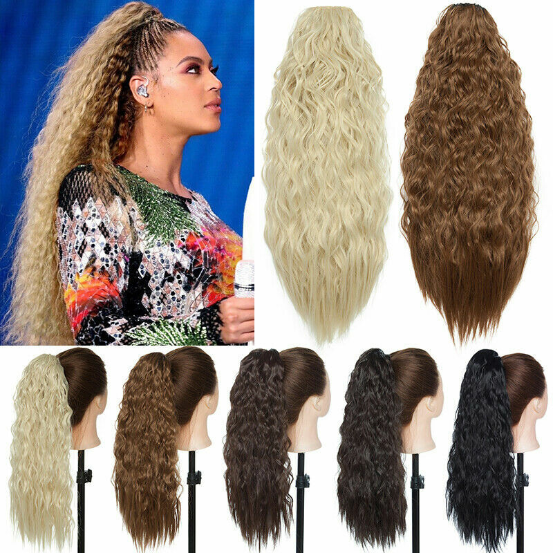 Real Long Clip In Ponytail Hair Extensions Drawstring Pony Tail as Human Wavy lc