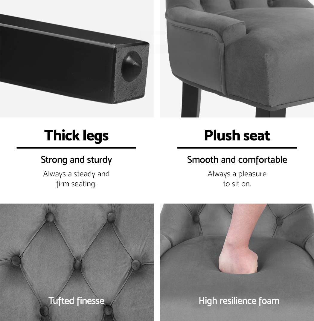 The tufted button design of the back rest, and the iconic curved back legs and turned front legs all add to the overall charisma of this classic chair.