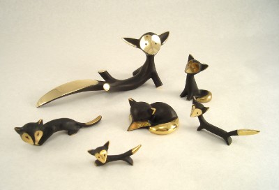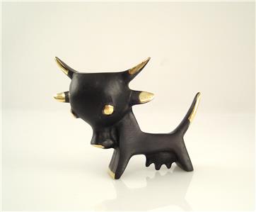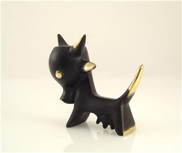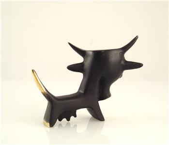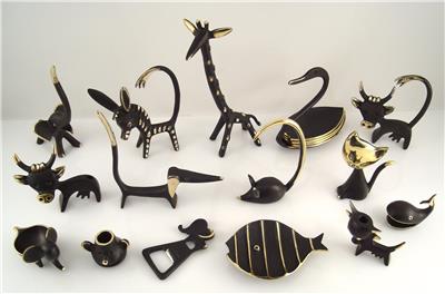 After World War II he moved to Germany and designed, mainly for the Federal Majolikafactory Karlsruhe, numerous figures of animals made of ceramic. Those objects became very popular in the 1950ies and 60ies. In this time he started to develop animal miniatures of the so-called “Black-Golden Line”. It was an innovative line of small brass animals that were patinated in black, whereas on several areas the polished brass shined through the black patina. Walter Bosse died in 1979, but his designs of small brass miniatures are still in production.