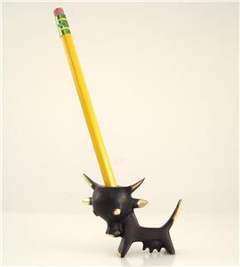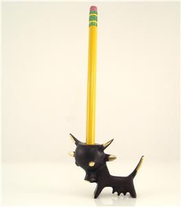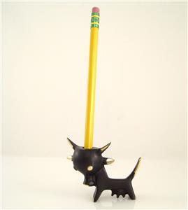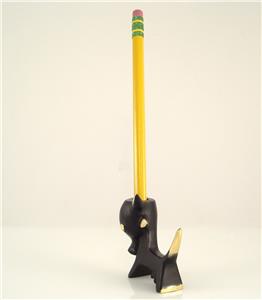 We are offering this original Walter Bosse Cow. The design dates back to the 1950s, the object is handmade in Austria and marked with 'Bosse Austria'. The material is brass, patinated and partially polished. The object is 48mm tall (close to 2 inches) and 62mm wide. Please see also the group photo (the other models are not included in this offer, but available), where you can find a larger version of this pen holder. The pencil is not included.
