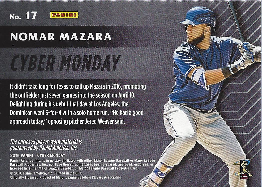 2016 Panini Cyber Monday Memorabilia #17 Nomar Mazara Jersey - NM-MT