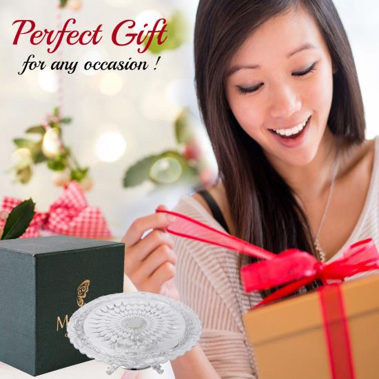 Matashi Silver Plated Crystal Glass Cake Plate Serving Platter Mothers day Gift