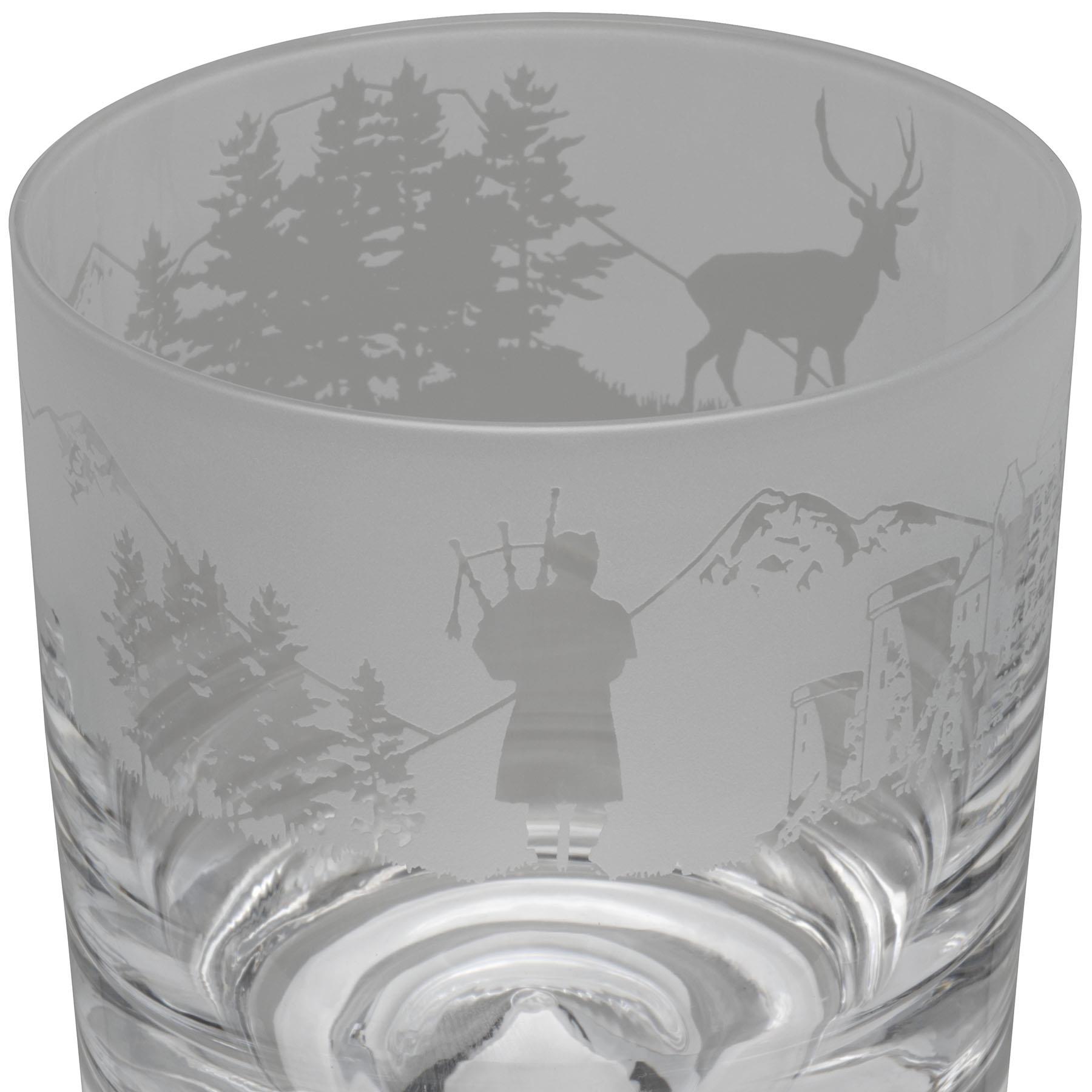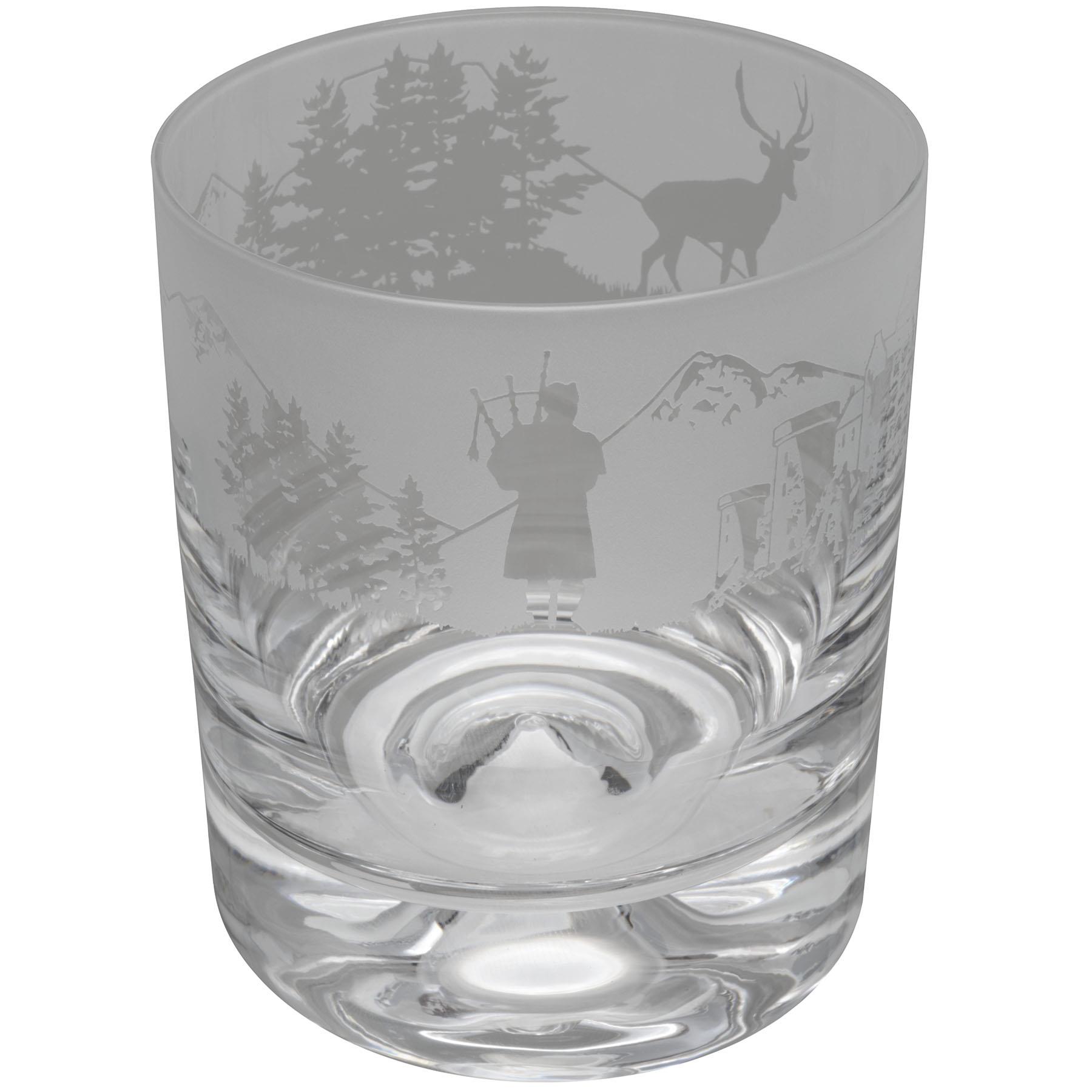 Beautifully decorated whiskey tumbler glass with sandblast engraved design