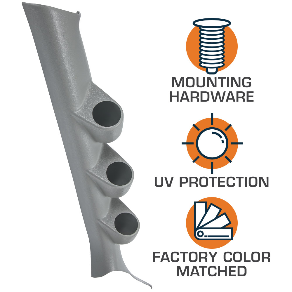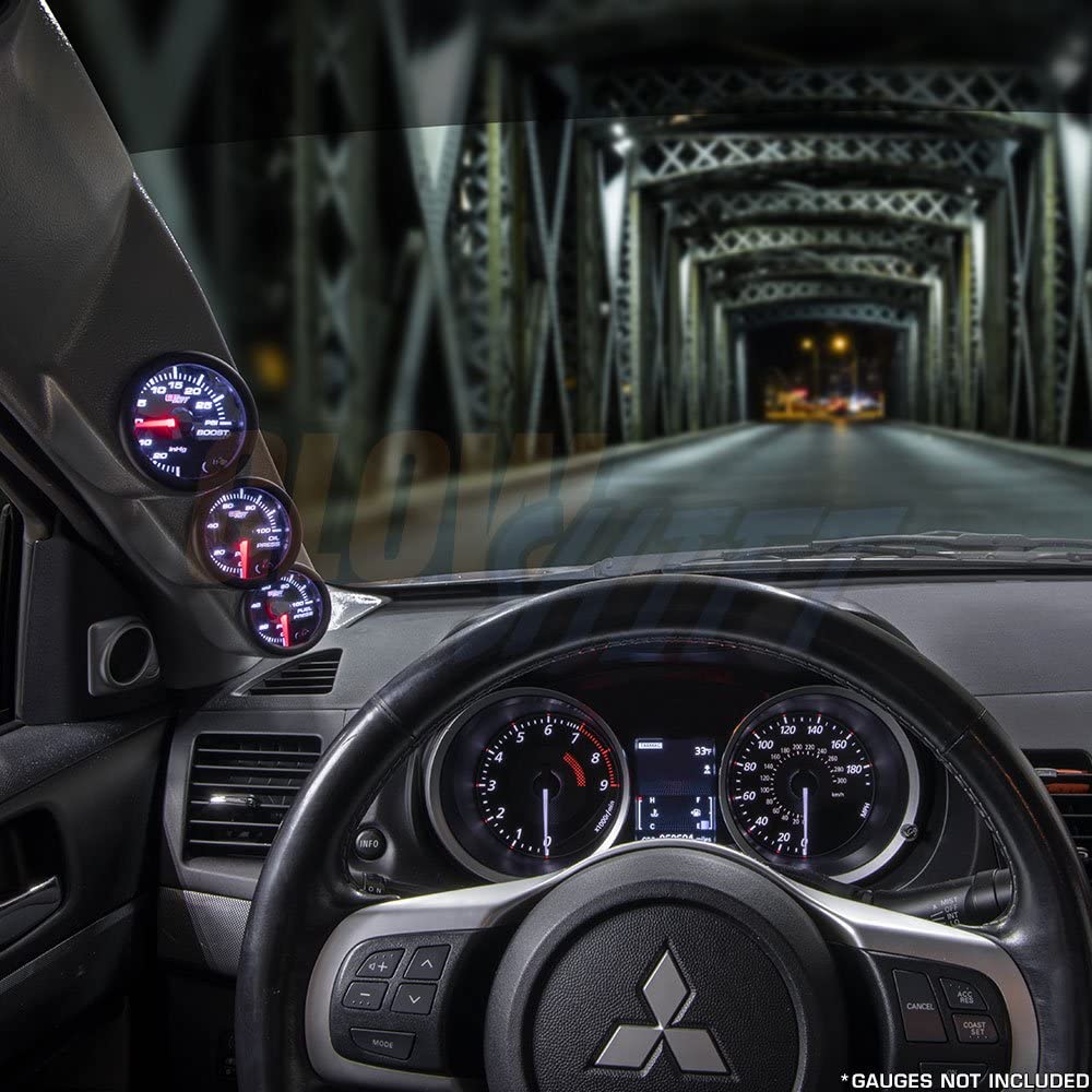 GlowShifts Gray Triple Gauge Pillar Pod is custom made for any 2008-2015 Mitsubishi Lancer Evo X and mounts directly to the factory A-pillar, holding (3) 2-1/16" (52mm) gauges. This aftermarket gauge pod is manufactured from high quality ABS plastic, allowing it to withstand cracking, fading and warping. It is also color matched to the factory interior for a custom fit and finish. Each triple pillar pod is installed using the included color matched flush mount push-in mounting fasteners, ensuring that your gauge pod is secure.