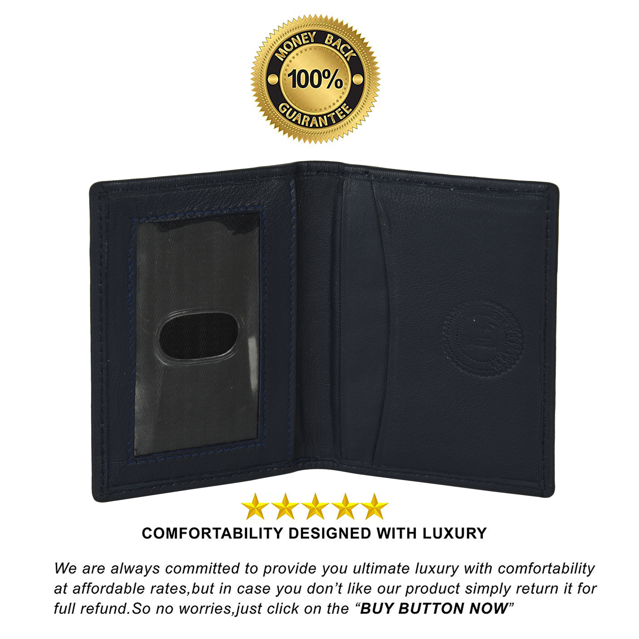 The Leatherboss leather goods are made with 100% top grain leather. All leather products have some natural and unique characteristics such as creases, small scars, or variations in color. These are not considered manufacturing defects; these unique characteristics help in telling the story of your beautiful leather goods. If the product you purchased for some reason doesn't live up to our promise of high quality craftsmanship, please contact us.