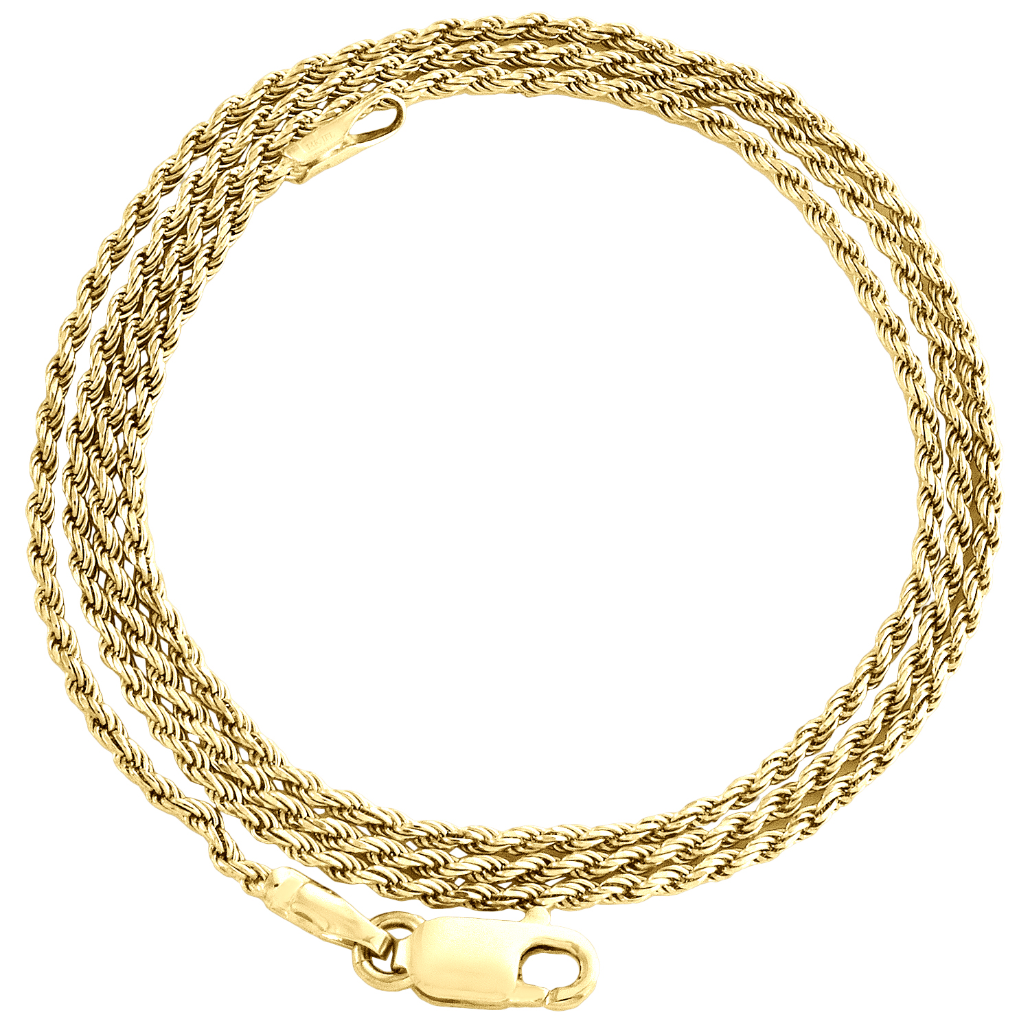 This real 14K Yellow Gold Solid Diamond Cut Rope Link Chain Necklace is presented in lustrous gold, finished with a professional bright high-polish for extra shine and luster. This chain measures 1mm wide and is available in different lengths. This chain comes in 16, 18, 20, 22, 24, 26, 28 and 30 inch length (check drop down to see which lengths are available in stock). The starting weight is approx. 3.5 gr. for 16" necklace. This classic link chain secures with Lobster Clasp so it is easy to put on and take off.