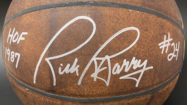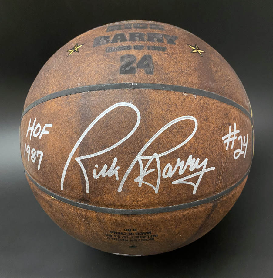 I have available this Full Size HOF LEGENDS leather basketball that has been signed by Rick Barry. Mr. Barry signed this for me IN PERSON and added "HOF 1987" and his number "24" with a signature.