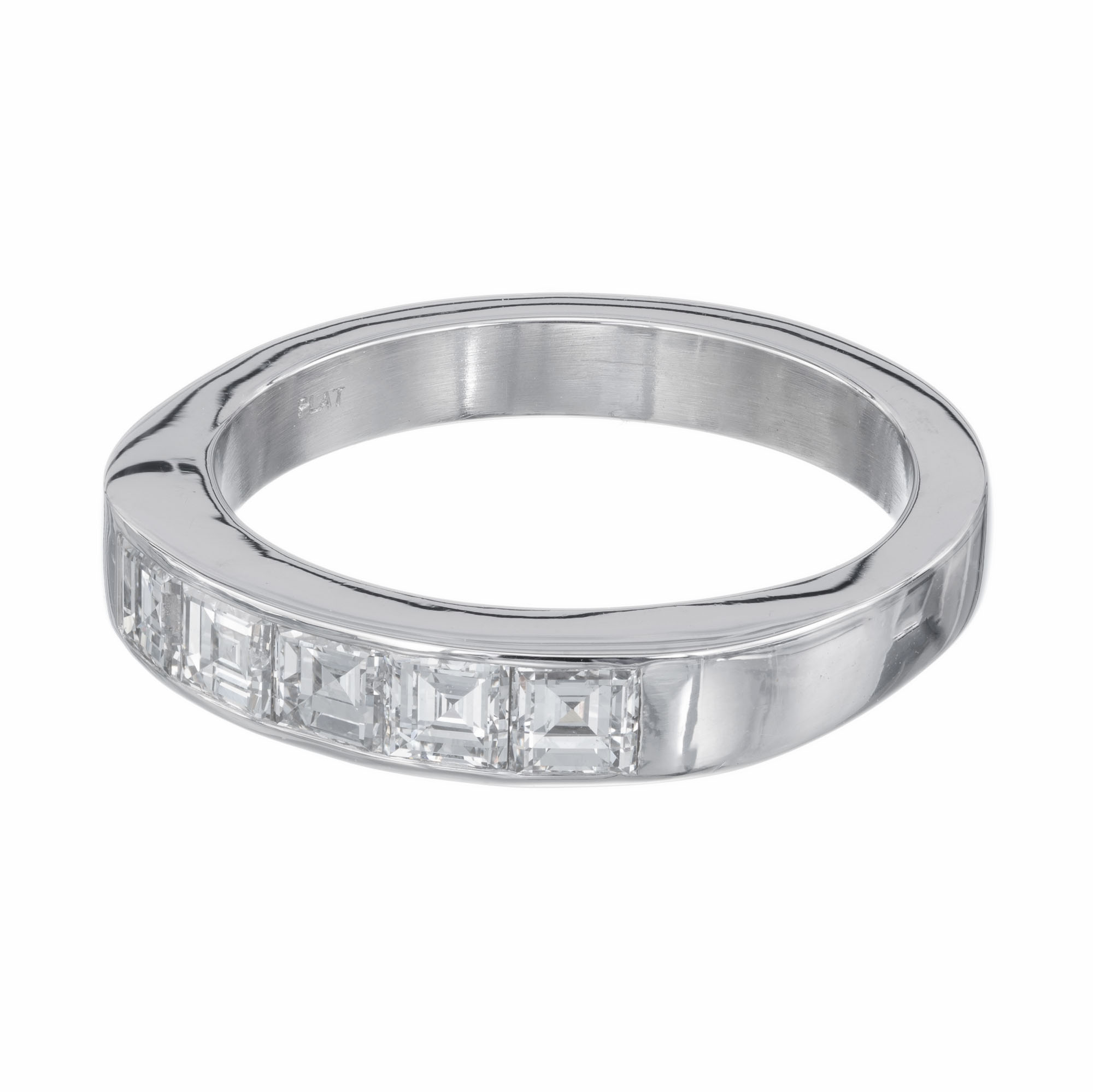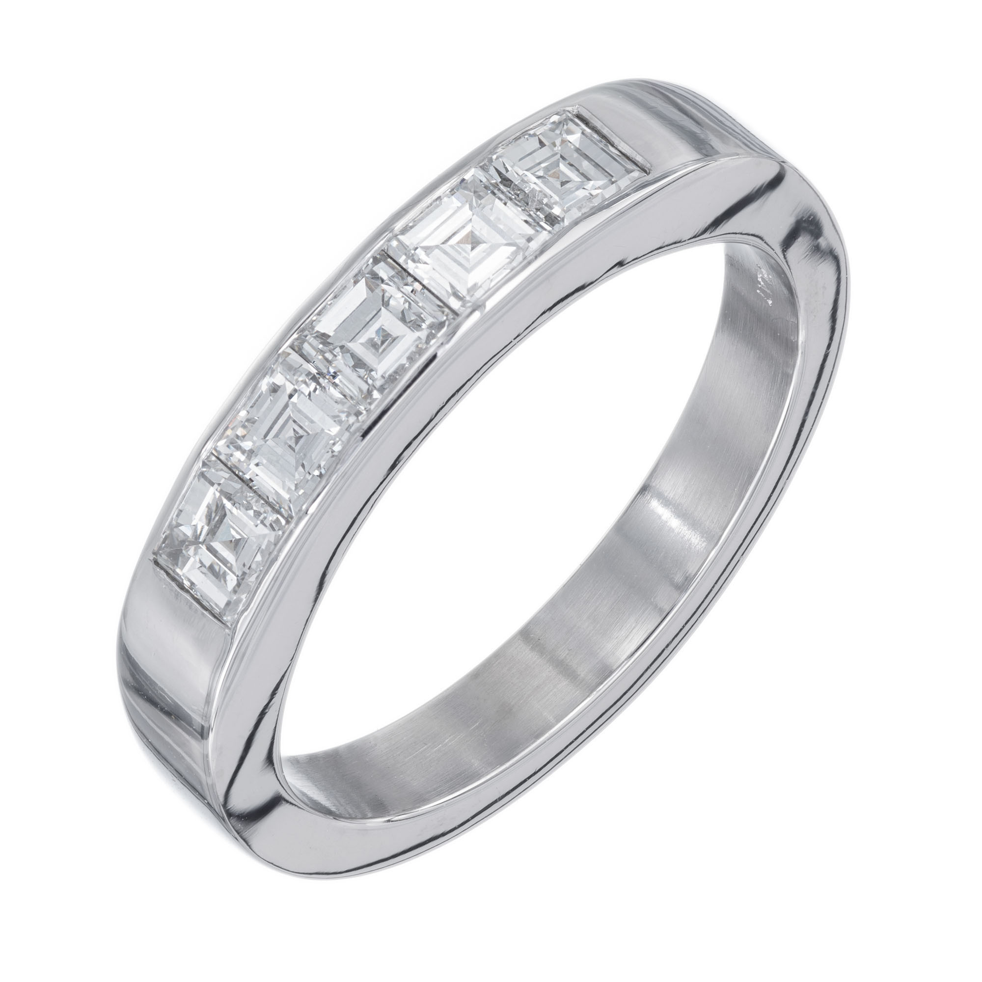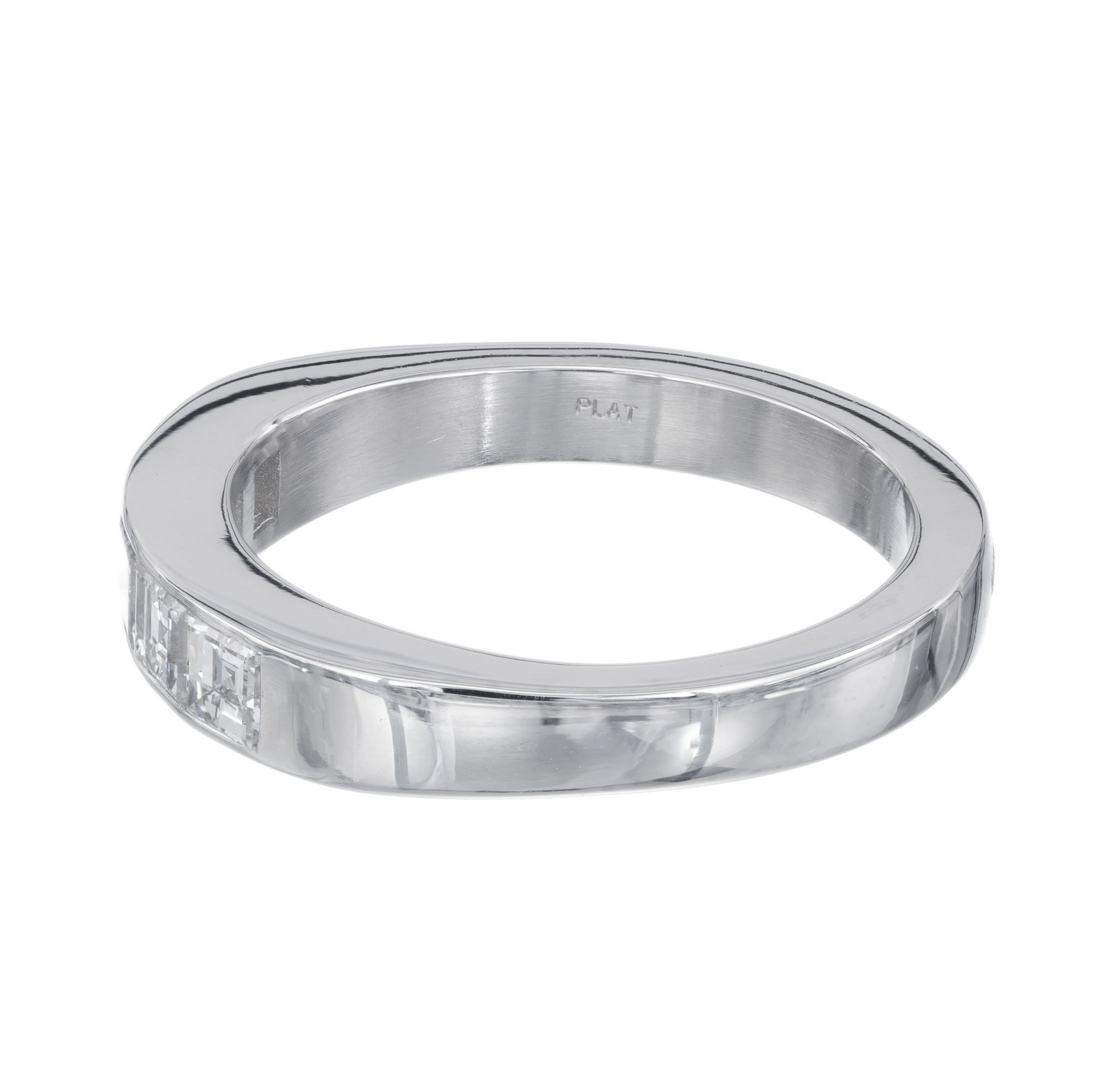 Art Deco 1920’s square step cut diamond wedding band ring. .70 carat square cut channel set diamonds in a platinum setting. Created in the Peter Suchy workshop.