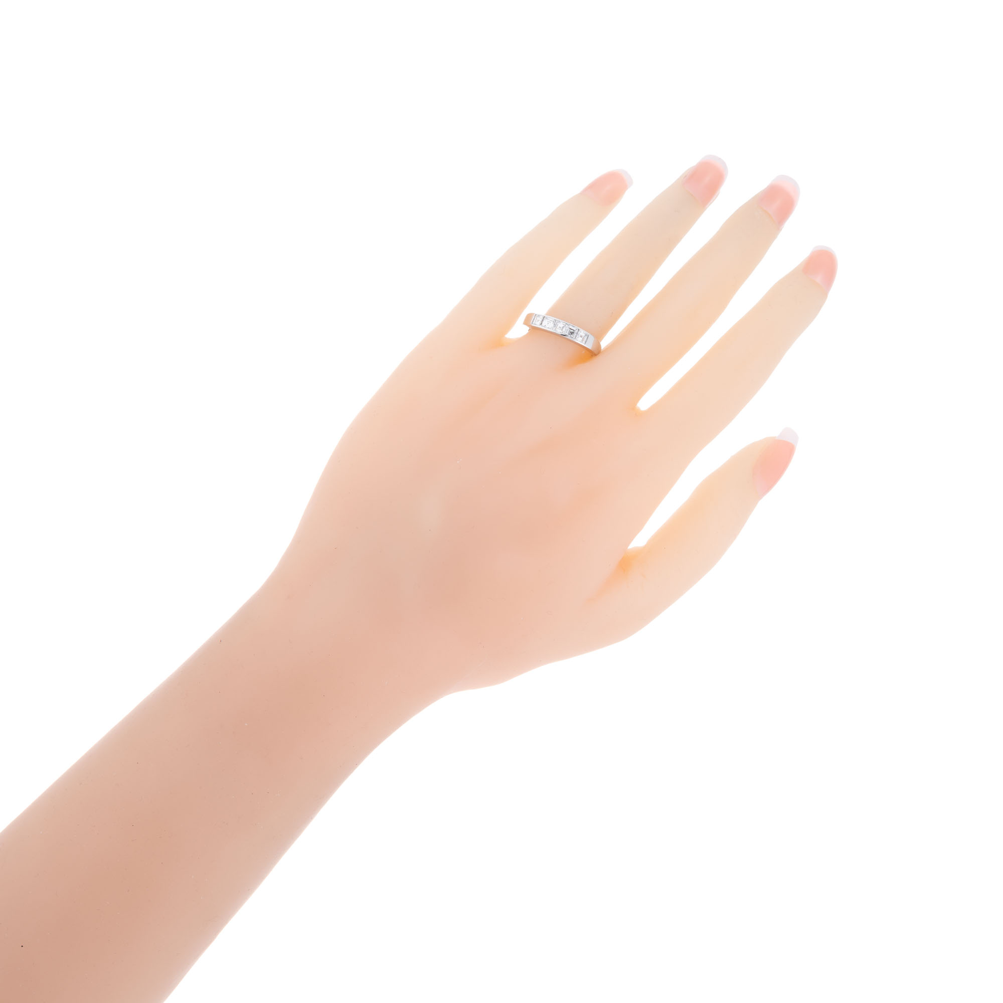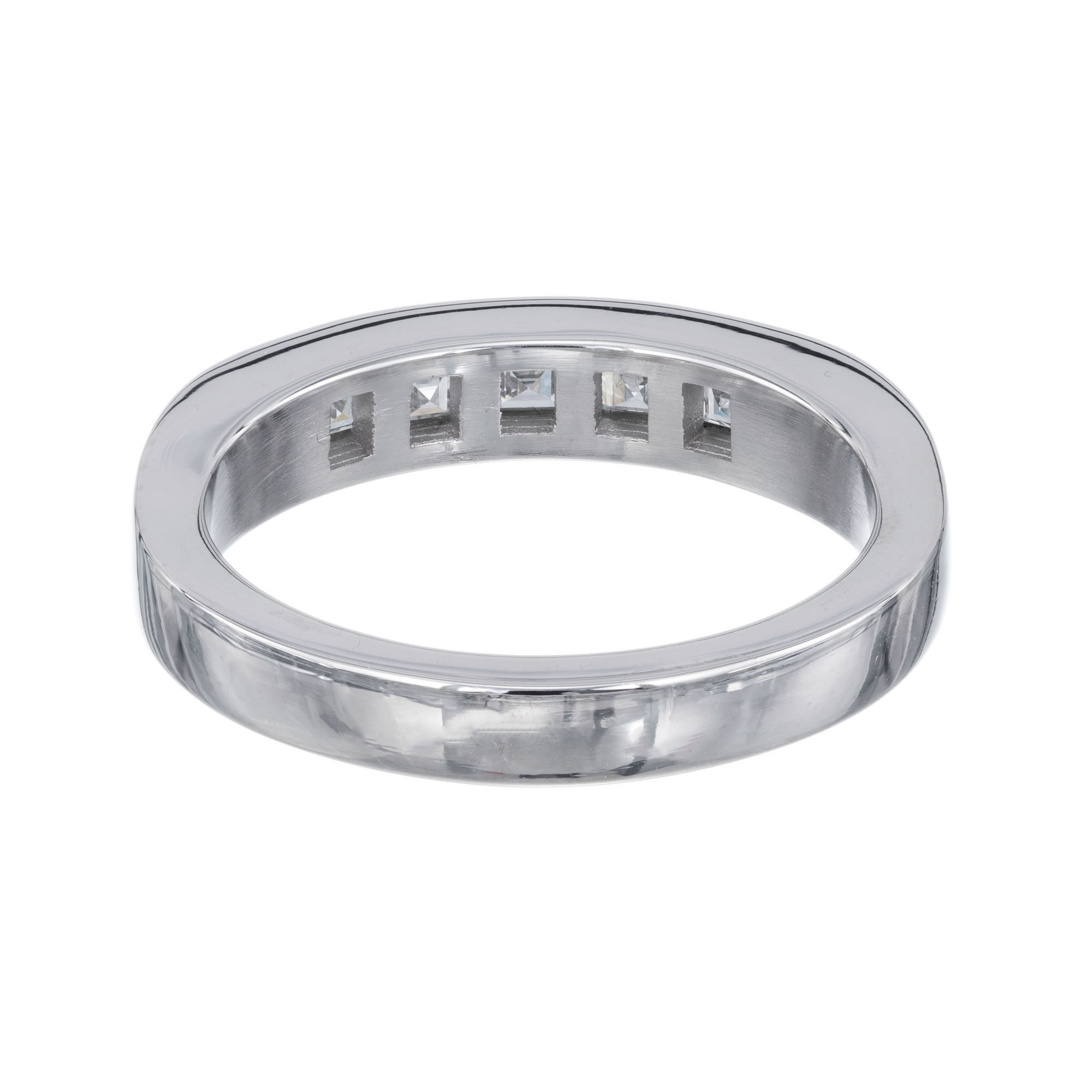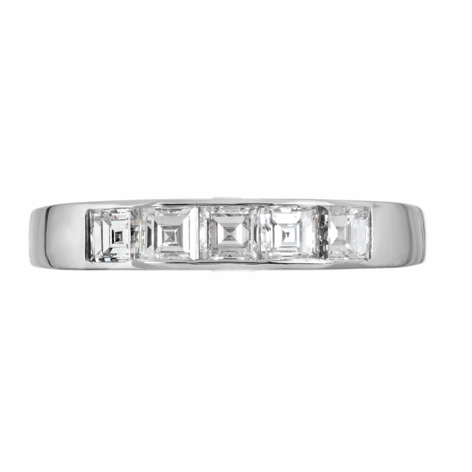 Art Deco 1920’s square step cut diamond wedding band ring. .70 carat square cut channel set diamonds in a platinum setting. Created in the Peter Suchy workshop.