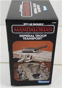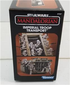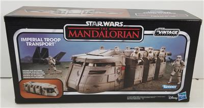 IN STOCK. Sealed mint in factory box. Old Kenner meets modern streaming with this sensational Star Wars The Vintage Collection The Mandalorian Imperial Troop Transport Vehicle from Hasbro. With opening doors and top hatch, a removable top, and a detailed interior that includes fold-down jump seats, there's room to seat several of your 3 3/4-inch scale action figures (sold separately). This awesomely detailed Imperial armament inspired by the Disney+ The Mandalorian TV series brings one of Kenner's most famous original creations from the 1970s to life in an updated style. Don't let it pass you by! Ages 4 and up.