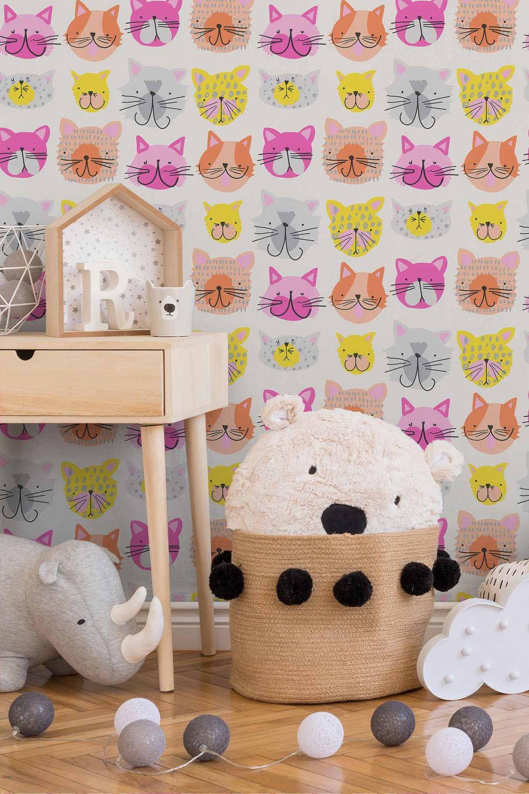 The most adorable Kitten Cat design on featuring large range of colourful breeds on white background is due to add a bit of colour and charm to your interior. High quality wallpaper is sure to transform your room in matters of minutes.