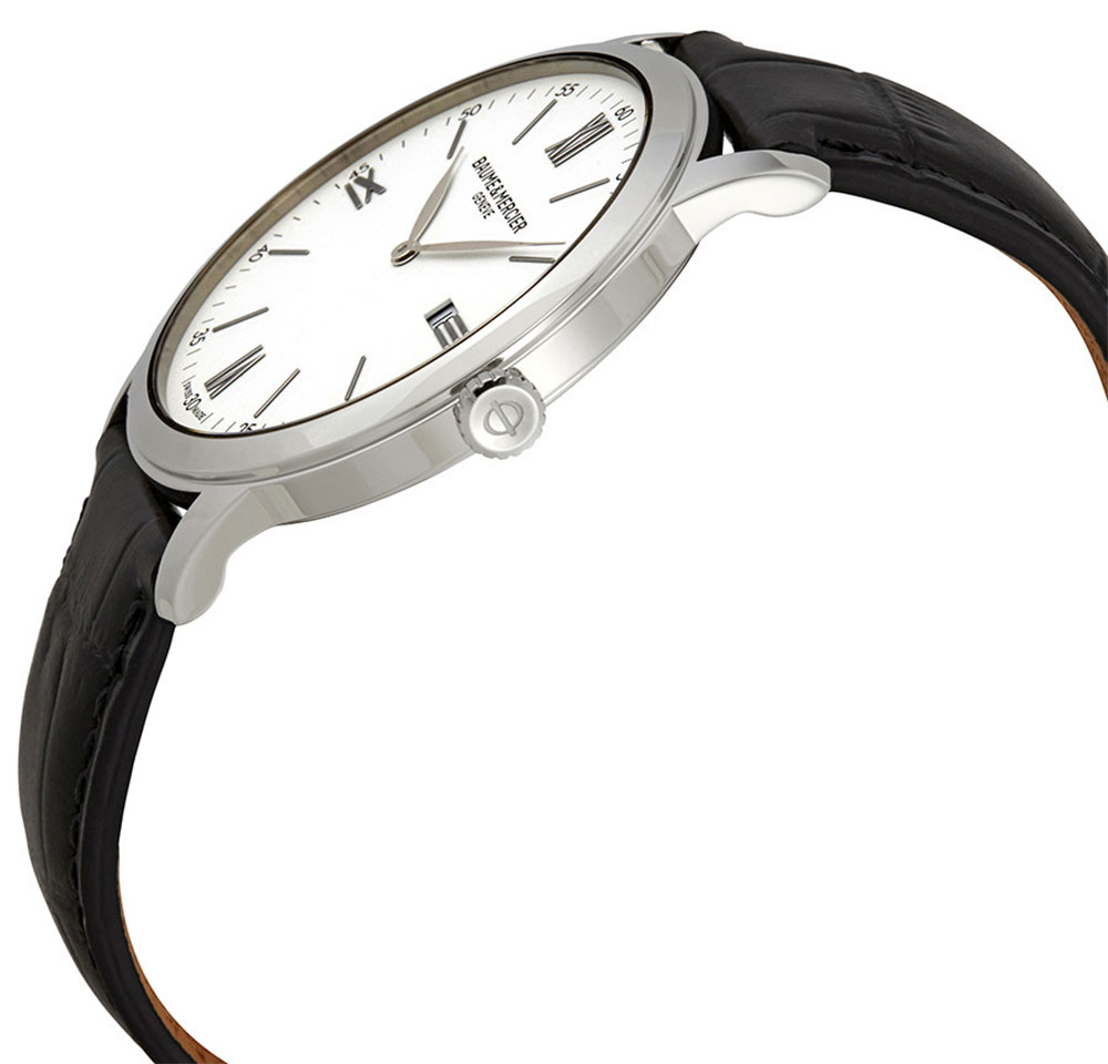 Like all of our watches, this Baume & Mercier Classima White Dial Black Leather Strap Date Quartz Mens Watch is brand new and comes in its original packaging!