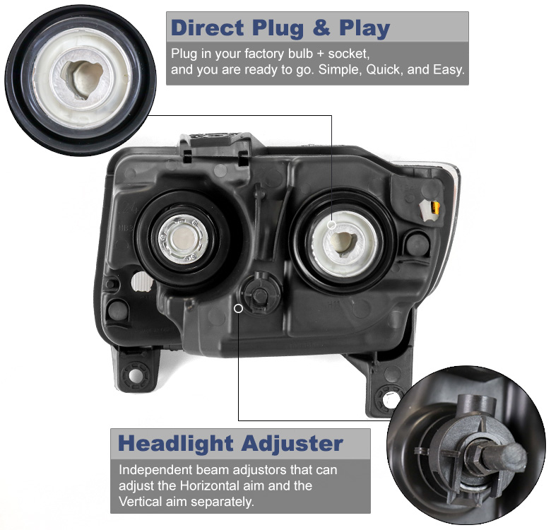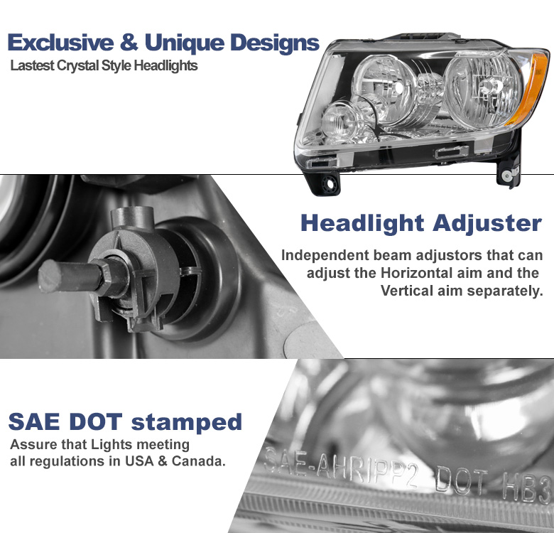 | Fitment | Compatible with 2011-2013 Jeep Grand Cherokee Compatible with 2011-2017 Jeep Compass *Fit models with factory halogen headlights only |
