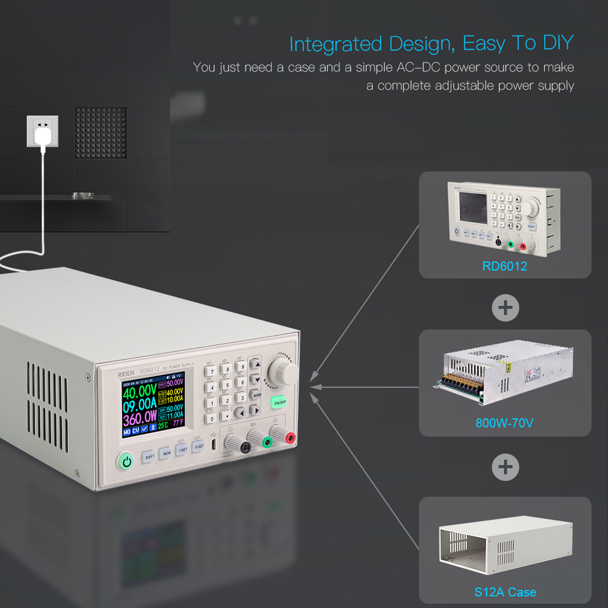 Für das S12A-Gehäuse ist es nur ein Gehäuse, das kein Netzteil enthält, aber es ist für das RD6012 / RD6012W- und AC-DC 800w 70V-Schaltnetzteil geeignet. Sie können es separat kaufen, um es einfach zusammenzubauen.