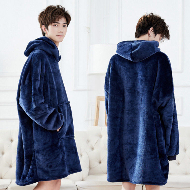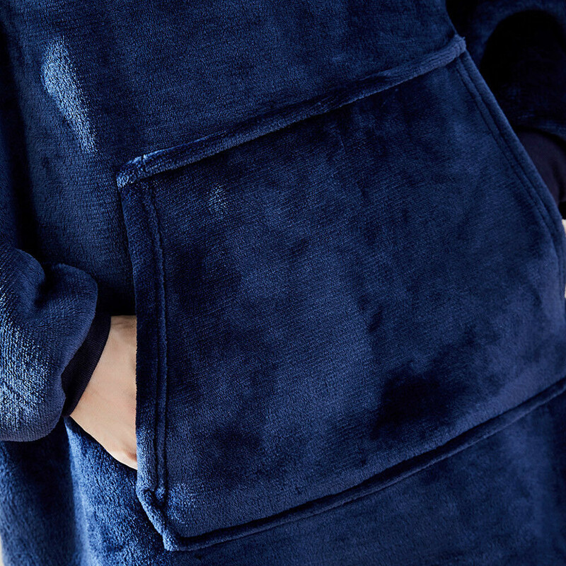 Reversible with polyester blanket fabric on one side and premium fleece comfort on the other, large center pocket and roomy sleeves.