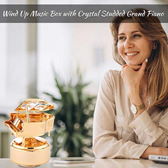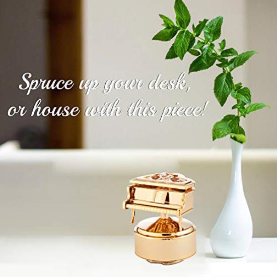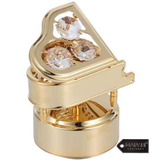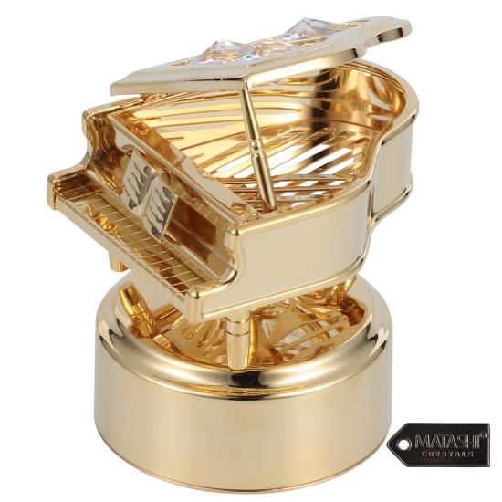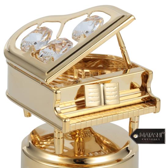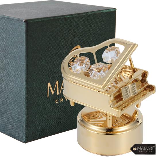 Made with 3 genuine Matashi® crystals, Gleaming gold-plated surface with soft felt finish on bottom To play music wind the base and watch the piano spin slowly to soft music.. Music Box Tune: "Swan Lake".