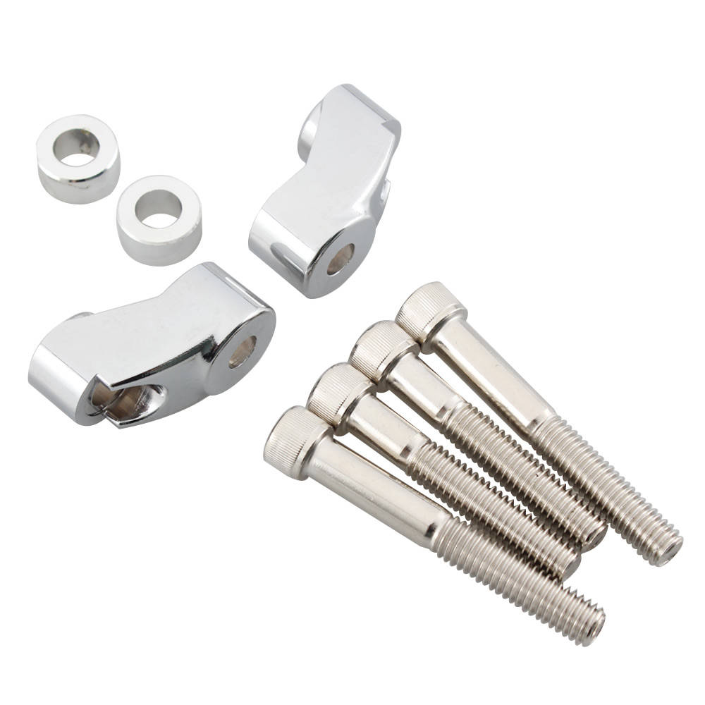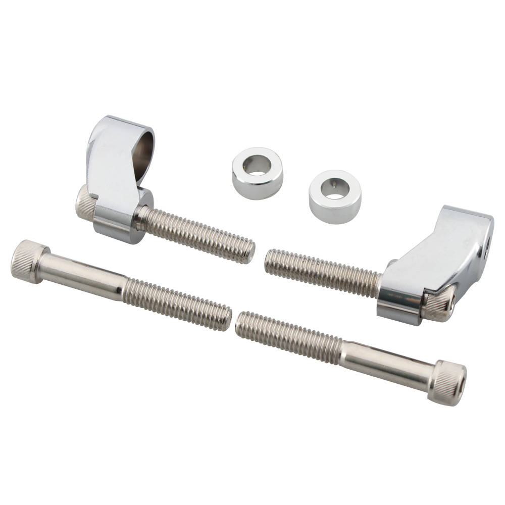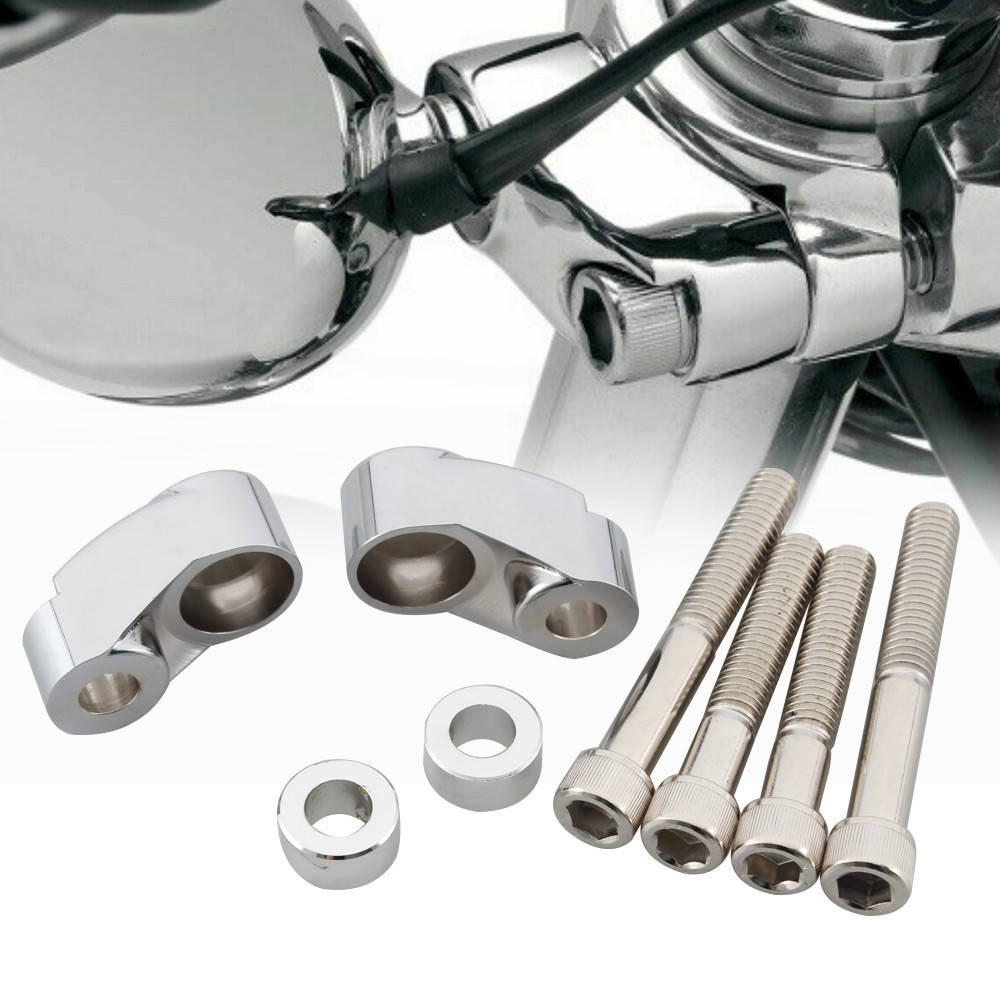 Description: Move turn signal closer to the bike for a cleaner look Available in chrome or gloss black Spacers are included for installation on 49mm forks Sold in pairs Specification: Condition: 100% Brand new aftermarket Position on Bike: Front Material: Aluminum alloy Finish/Color: Chrome Package Includes: 1 Pair of turn signal bracket(L&R)mounts Fitment: For FXR 87-00 , for Dyna Glide 91-05 , For XL 87-07 With 39MM Forks And 06-07 for Dyna Glide With 49MM Forks NOTE: triple trees must have pinch bolts that face outward at a 90 degree angle from the fork. For Dyna Convertible - FXDS-CONV 1995-2000 For Dyna Daytona - FXDB 1992 For Dyna Glide Custom - FXDC 1992 For Dyna Low Rider - FXDL 1993-2005 For Dyna Low Rider (EFI) -FXDL 2007 For Dyna Low Rider Convertible - FXDS-CONV 1994 For Dyna for Street Bob (EFI) - FXDB 2007 For Dyna Sturgis - FXDB 1991 For Dyna Super Glide - FXD 1995-2005 For Dyna Super Glide (EFI) - FXD 2007 For Dyna Super Glide Custom - FXDC 2005 For Dyna Super Glide Custom (EFI) - FXDC 2007 For Dyna Super Glide Custom Injected - FXDC I 2005-2006 For Dyna Super Glide Injected - FXD I 2004-2006 For Dyna Super Glide Injected - FXD I 35 2006 For Dyna Super Glide Sport - FXDX 1999-2005 For Dyna Super Glide Sport Injected - FXDX I 2004-2005 For Dyna Super Glide T-Sport - FXDXT 2001-2003 For Dyna Wide Glide - FXDWG 1993-2005 For Dyna Wide Glide - FXDWG 2 2001 For Dyna Wide Glide - FXDWG 3 2002 For Dyna Wide Glide (EFI) - FXDWG 2007 For Dyna Wide Glide Injected - FXDWG I 2004-2005 For FXR 2 1999 For FXR 3 1999 For FXR 4 2000 For Low Rider - FXRS 1987-1993 For Low Rider Chrome - FXRC 1987 For Low Rider Convertible - FXRS-CONV 1990-1993 For Low Rider Sport - FXRS-SP 1987-1993 For Sport Glide - FXRT 1987-1993 For Sportster - XL 883 2004-2006 For Sportster - XL 883R 2002-2003, 2005-2006 For Sportster - XLH 1200 1988-2003 For Sportster - XLH 883 1987-2003 For Sportster (EFI) - XL 883 2007-2008 For Sportster (EFI) - XL 883R 2007 For Sportster Custom - XL 1200C 1996-2006 For Sportster Custom - XL 883C 1999-2006 For Sportster Custom (EFI) - XL 1200C 2007 For Sportster Deluxe - XLH 883 1988-1995 For Sportster Hugger - XLH 883 1987-2003 For Sportster Low - XL 1200L 2006 For Sportster Low - XL 883L 2005-2006 For Sportster Low (EFI) - XL 1200L 2007 For Sportster Nightster (EFI) - XL 1200N 2007 For Sportster Roadster - XL 1200R 2004-2006 For Sportster Roadster (EFI) - XL 1200R 2007 For Sportster Sport - XL 1200S 1996-2003 For Street Bob Injected - FXDB I 2006 For Super Glide - FXR 1987-1994