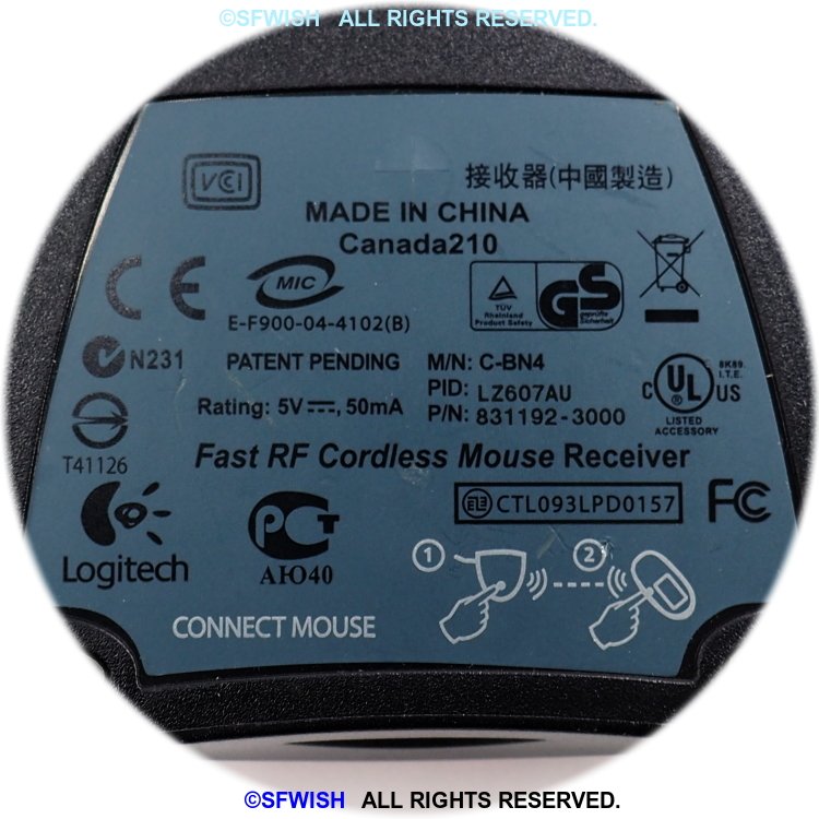 This listing is for USED logitech C-BN4 USB RF Mouse Receiver. This USB receiver is in an excellent condition and works great! Looks clean. Sorry no manual, mouse or original box/packaging. Comes as shown.