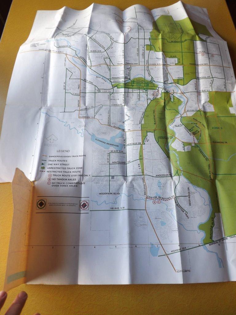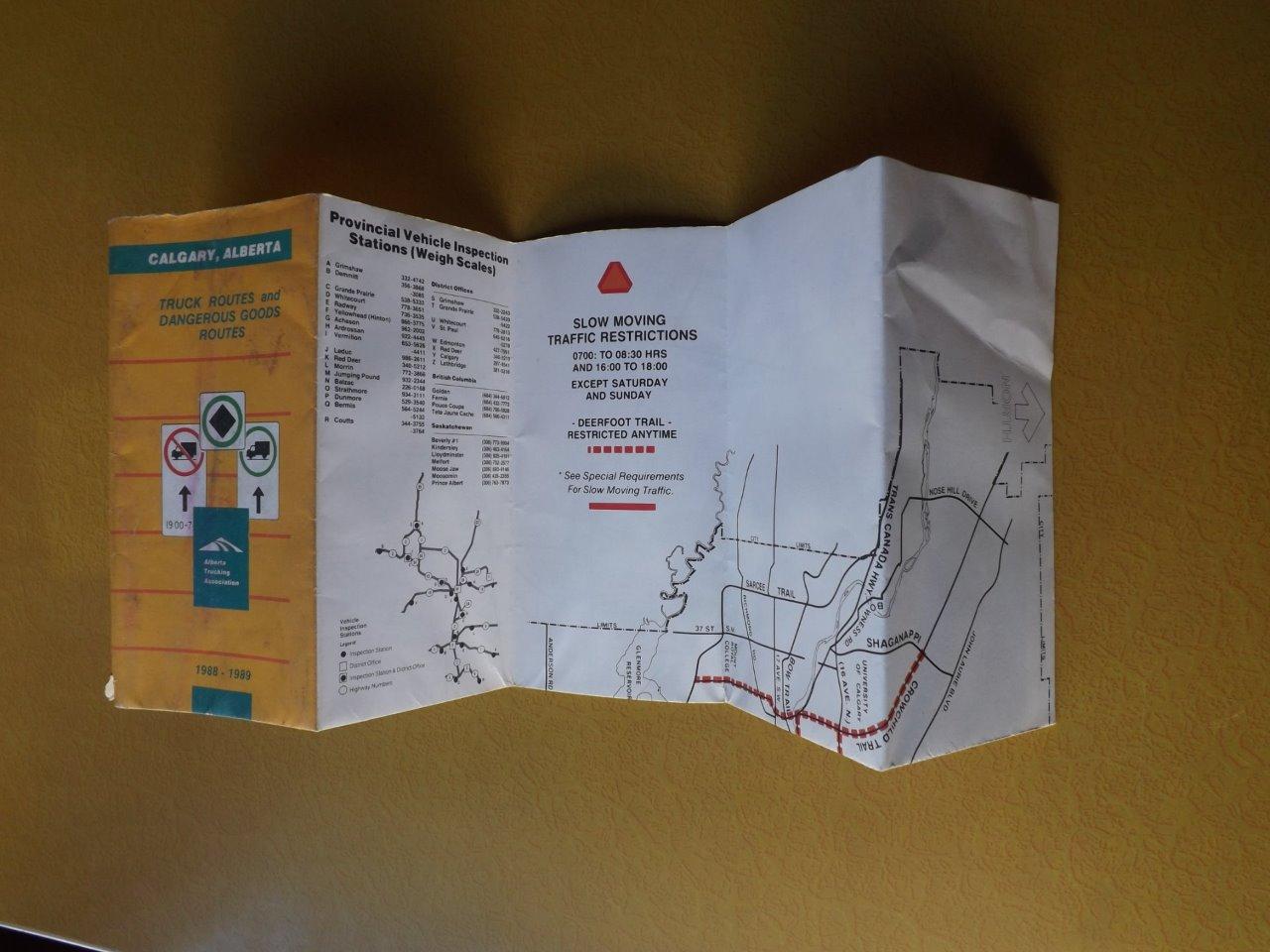 TRUCK ROUTES AND DANGEROUS GOODS ROUTES MAP CALGARY ALBERTA 1988-1989