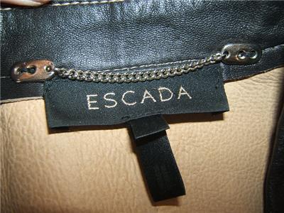 Escada Womens Luxury Black Leather with Cut-out Detail Designer Coat/ Jacket