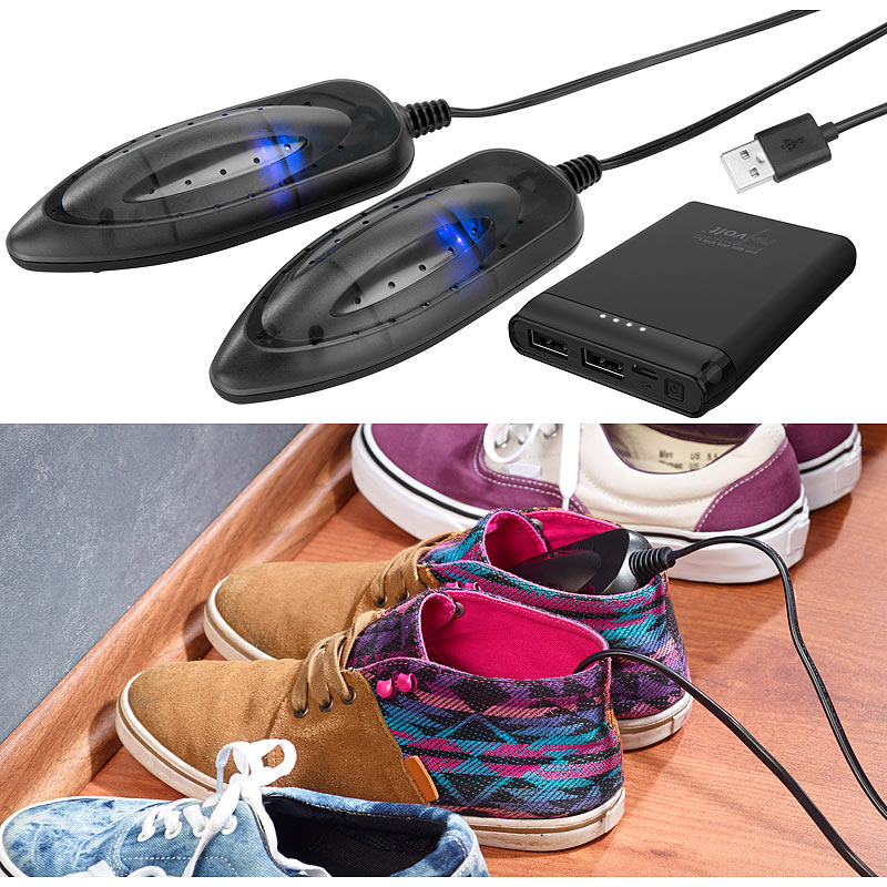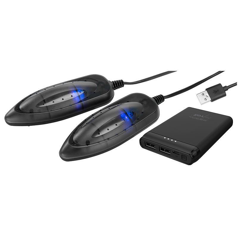Vetreiben Sie Nässe und unangenehme Gerüche - auch unterwegs: Ihre neuen Schuhtrockner verbinden Sie einfach per USB z.B. mit der mitgelieferten Powerbank oder im Auto. Schon trocknen und wärmen Sie Ihre Schuhe jederzeit und überall.