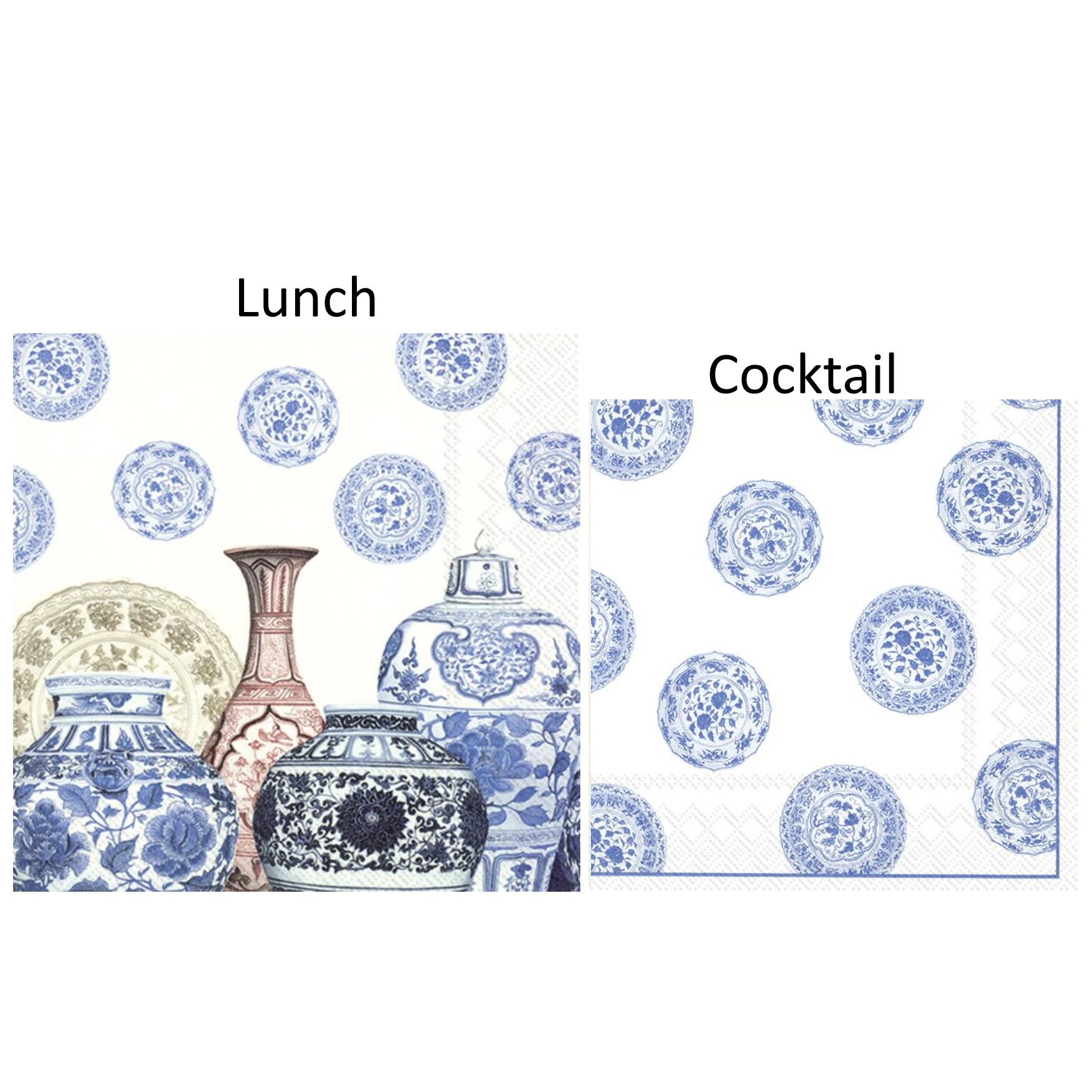 Cocktail napkins: 25cm x 25cm opened (12.5cm x 12.5cm folded)