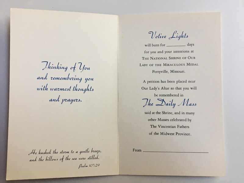 Small folded brochure dated 1981 from National Shrine of Out Lady of the Miraculous Medal in Perryville, Missouri. Excelent condition. A pre-owned vintage brochure so there is most likely some imperfections to the brochure. Be sure to use the zoom tool so you can determine condition.