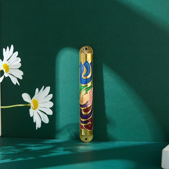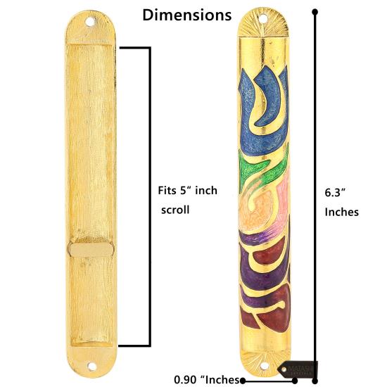 Matashi Gold Hand Painted Multi Color Enamel Mezuzah Embellished with Hebrew Shin Home Door Wall Decor Home Decor Jewish Holiday Housewarming Present House Blessing Gift for Holiday Festival
