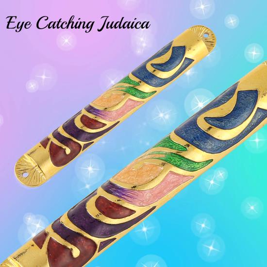 The mezuzah is decorated with a Shin and hand painted with multi color enamel. The perfect gift for someone who has just purchased a new house. Surprise the proud owners of a house with this religious symbol!