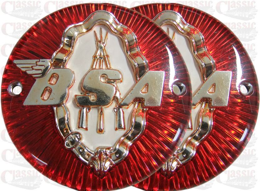 BSA C12 Round Tank Badges Red/Gold