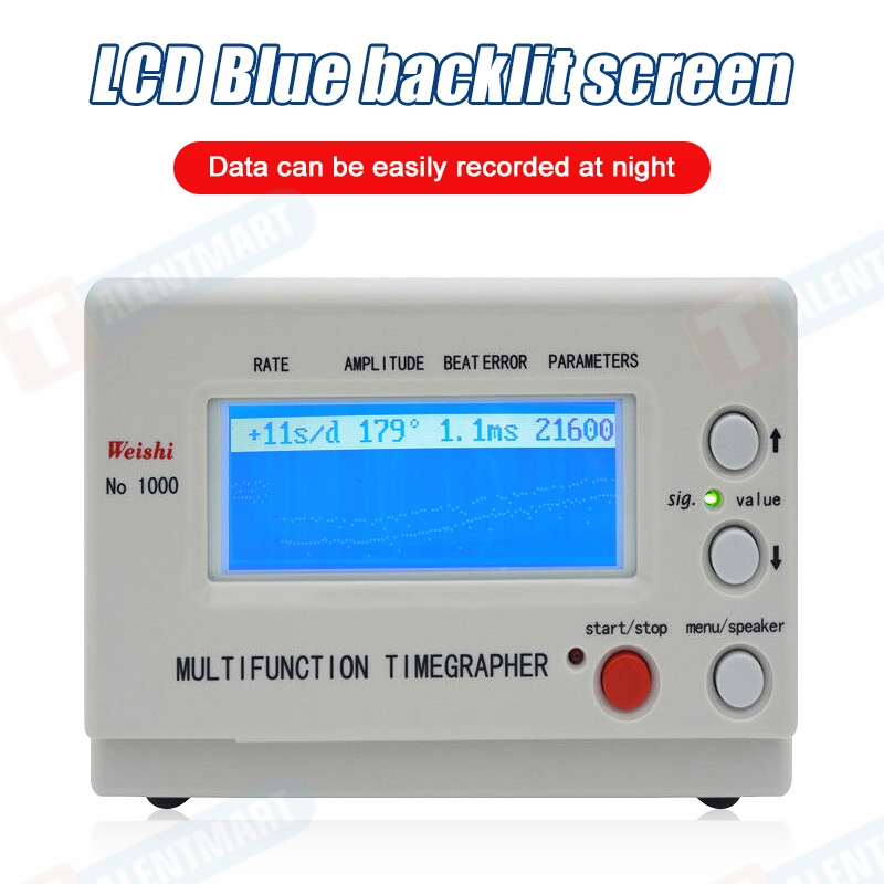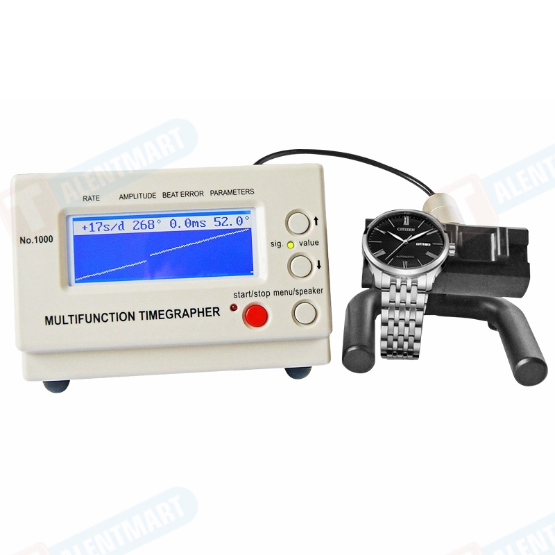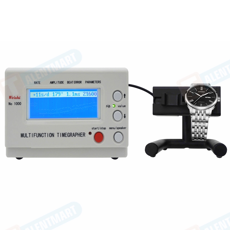 - This watch testing machine automatically calculates rate, amplitude, and beat error using readings from the microphone stand. This stand allows you to position the watch 6 different ways to test reliability in different settings.