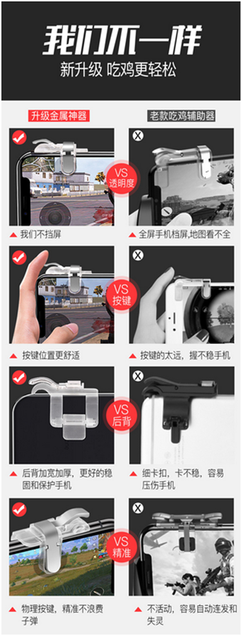 Packing list: crystal box packaging + eat chicken MN left and right handles + manual