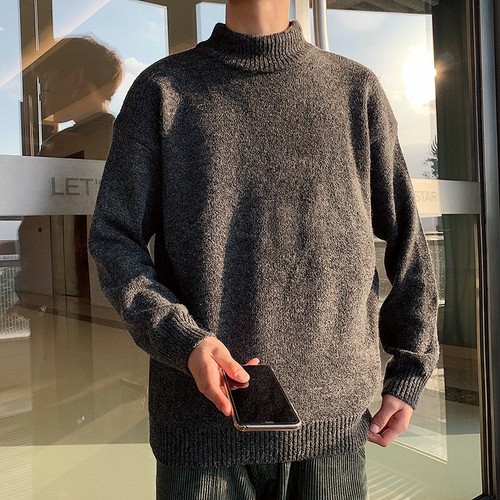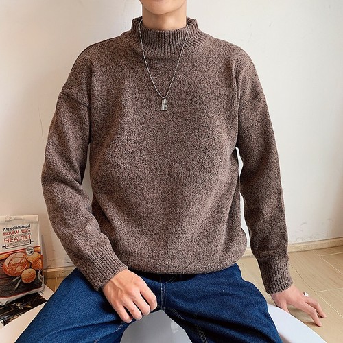 Mens Mock Neck Pullover Sweater Long sleeve Jumper Tops Casual Winter Knitwear L