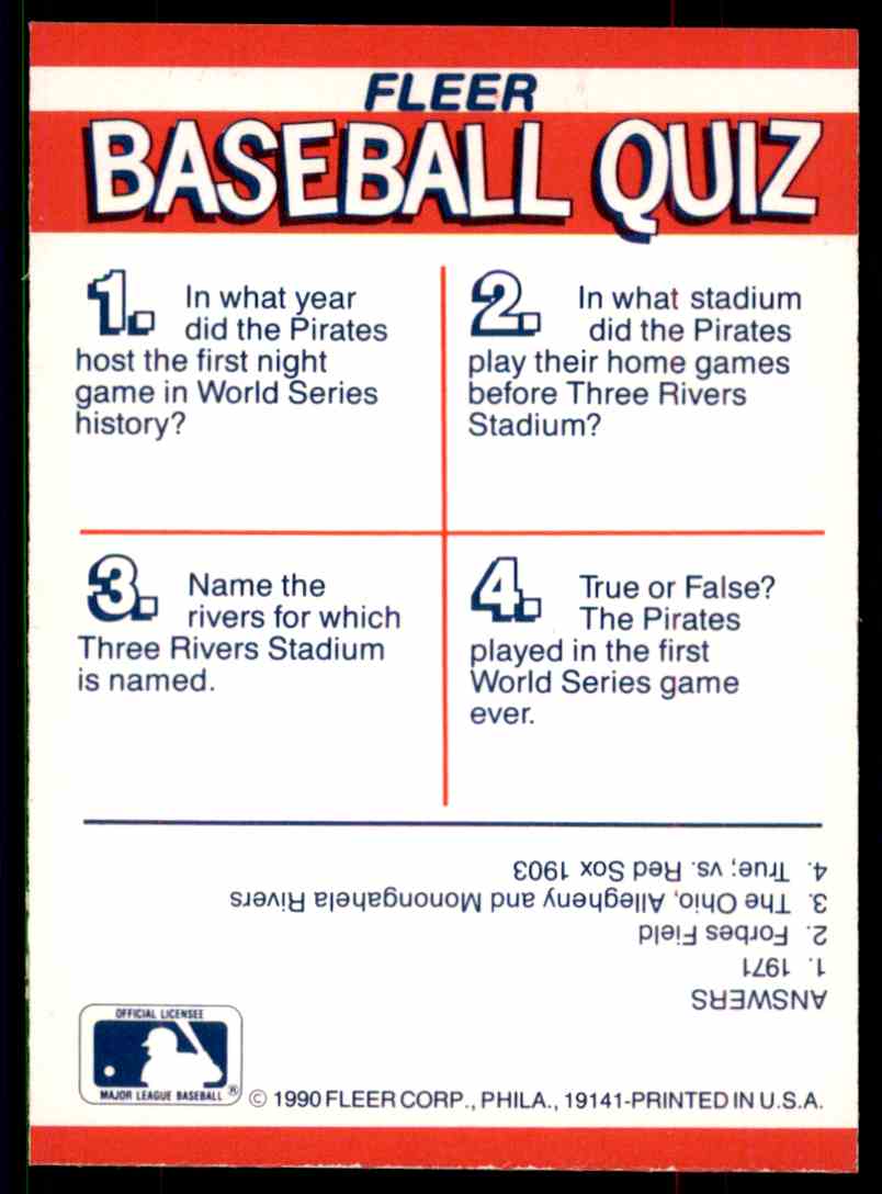 | 1990 Fleer MLB Logo Stickers W/Baseball Quiz Backs Pittsburgh Pirates |