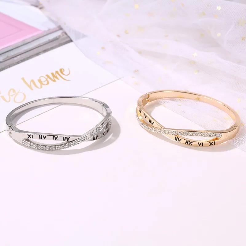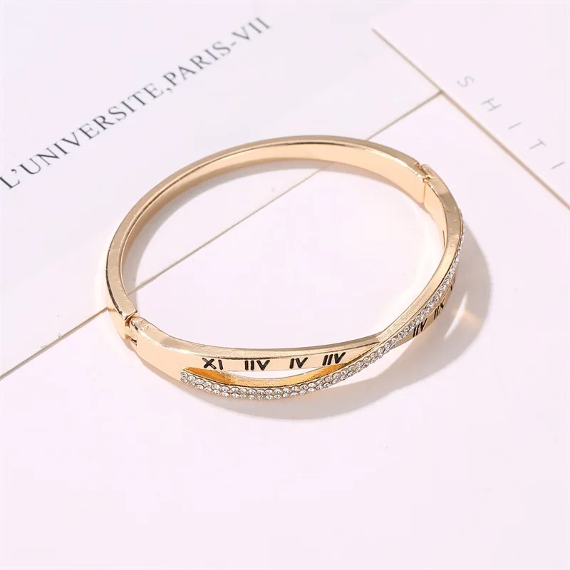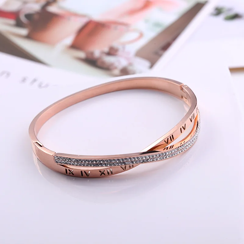Pulsera clásica de moda para mujer, brazaletes de oro de Color plateado para mujer, pulsera de oro rosa con diamantes de imitación, joyas de regalo a la moda
