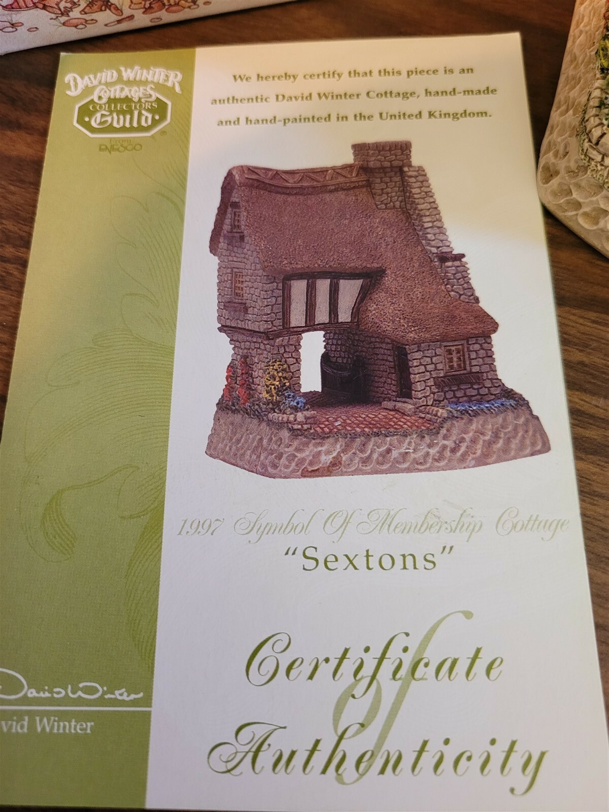 David Winter Cottages 1997 Collector's Guild Symbol Of Membership SEXTONS