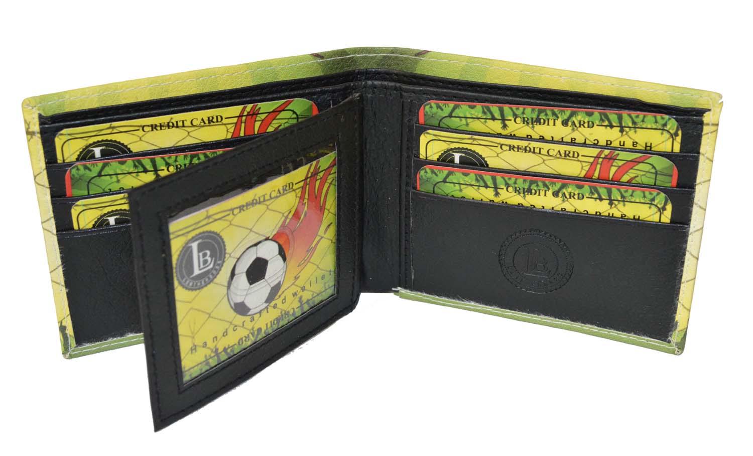Leatherboss Genuine Leather Men Bifold Soccer with printed gift box