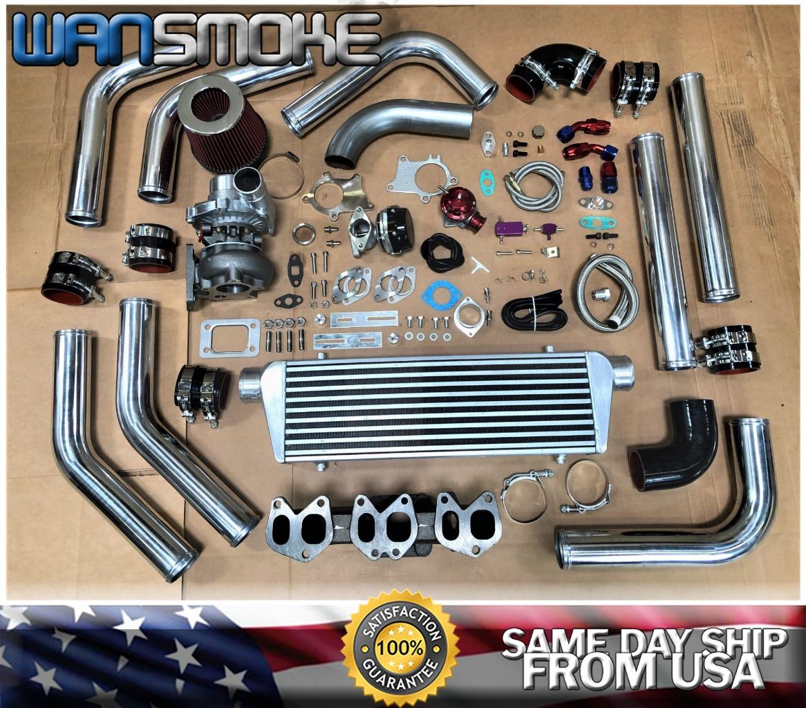 ~~~WANSMOKE~~~ Fast Shipping, 100% Customer Satisfaction ! WANSMOKE has the best products with the best prices. We believe in Safety and Standards in both machining and manufacturing. Unlike our competitors who offer you low prices for inferior products, we build products that lift and level your vehicle without compromise. Cutting corners is awesome when driving your car but not when manufacturing, buy right, choose Supreme. 1992-2005 Volkswagen Golf GTi VR6 2.8L 12V 1992-2001 Volkswagen Jetta VR6 2.8L 12V 1993-1997 Volkswagen Passat VR6 2.8L 12V 1990-1995 Volkswagen Corrado VR6 2.8L 12V Fits vehicles running with Volkswagen MK3, MK4 VR6 2.8L 12-Valve Engine ONLY Includes - T3/T4 Turbocharger Includes - Turbo Manifold Includes - Front Mount Intercooler Includes - Intercooler Mounting Kit Includes - Piping Kit Includes - Silicone Coupler Includes - T-Bolt Clamp Includes - Air Intake Filter Includes - Blow off Valve Includes - BOV adapter Flange Includes - External Wastegate Includes - Steel Tube Includes - Manual Boost Controller Includes - Oil Feed Line Includes - Oil Restrictor Adapter Includes - Oil Return Drain Line Includes - Oil Pan Drain Plug Adapter Includes - T3 4 Bolt Gasket Includes - T3 5 Bolt Flange + Gasket T3/T4 TURBOCHARGER 100% Brand New T3/T4 Hybrid Turbocharger! High Quality Guaranteed! cast housing with durable steel. Capable of boosting horse power up To 350+ BHP, standard 4 bolt exhaust flange, Capable of 8 PSI or 15-25 PSI output at peak power. CNC machined flanges. Internal wastegate setting: 8 PSI. High quality t04e with a forged turbine propeller wheel! Turbo Specification: - Standard 5 bolt T3 Flange. - 5 Bolt Standard Hot Side. - Standard T3/T4 Flange. - Oil Inlet - 1/8 NPT Oil Inlet. - Bearing Type - Journal Bearing. - Wet Floating Bearings. - Cooling Type: Oil Cooled. Compressor Specs: - 3" Compressor Inlet. - 2.07" Inducer. - 2.36" Major. - 2" Compressor Outlet . - T04B/T4 Type Compressor Housing. - Compressor .50 A.R. - Compressor .57 Trim. - 8 Blade Type T4 Compressor Wheel. Turbine Size: - T3 Type 4 Bolt Turbine flange. - 5 bolt Exhaust flange. - Turbine .63 A.R. - 2.48" Minor and 2.89" Major Propellar. - T3 Turbine Housing. - 2.274" Outlet TURBO MANIFOLD 1. Standard T3/ T4 (T03/ T04) Turbo Flange Configuration Outlet. 2. Included Wastegate Flange for 35mm/38mm external WG. 3. Increase Engine Intercooler Output and Efficiency. 4. Made of High Quality Cast Iron Material for Strength and Durability. INTERCOOLER: 1. 6061 Light Weight Billet Aluminum Construction. 2. Tube & Fin Light Weight Design. 3. Construction: Machine Cut and Stamped Hand Welded. 4. Working Pressure: 5~50PSI. 5. Pressure Drop:2~5psi@35psi;0.2~0.5psi@15psi. 6. Hot Air Temperature: 32°F~302°F (0°C~150°C) 7. Compress Air Flow Rate: < 350 Cubic Feet/Min Rated to 500 Max HP. 8. Overall Size - 27" x 7" x 2.5" 9. Core Size - 21" x 6.5" x 2.5" 10. In/Outlet - 2.5" OD / 2.25" ID PIPING: 1. Made of High quality T-6061 LIGHTWEIGHT Aluminum Piping. 2. Powder-Coated Surface Finish. 3. 2.5" Piping Diameter. 4. 2.0mm Pipe Thickness. 5. Increase 65% Air Flow comparing with other Standard Piping. SILICONE COUPLER: 1. Made of high quality silicone material 2. Thickness of wall:5 mm, 4 ply reinforced 3. Working Pressure: 0.3 Mpa (43.5 PSI) to 0.9 Mpa (130.5 PSI) 4. Bursting Pressure: 2 Mpa 5. Working Temperature: -76°F (-60°C ) to +500°F (+260°C) 6. Size tolerance:+/-0.5 mm T-BOLT CLAMP: 1. Made of High quality 301 SS Stainless Steel Clamp 2. Stainless steel construction resists corrosion 3. Provide uniform sealing pressure for a positive 4. Polished finish increases engine bay aesthetics AIR FILTER: 1. Oil-free filter Micro cotton gauze type filter material washable with water or soap and reusable. 2. Improves Up to 95% Filtration Efficiency. 3. Designed to increase horsepower and acceleration. 4. Width: 6" Inlet: 3.0" Overall Tall: 3.5" Mesh Tall: 2.5" BLOW OFF VALVE: 1. Aggressive JDM racing discharge sound. 2. 8 Discharge ports that draw in surrounding air and release a unique discharge sound. 3. 40mm hard-anodized valve for increased airflow. 4. Dual spring system promoted response and allows for high boost pressures. 5. Support up to 30 PSI boost pressure. OIL LINE: 1. OIL DRAIN FEED LINE. 2. 10AN Fittings. 3. Inner Diameter: 0.50" 4. Length: 17.00" 5. CNC Machined Turbo Adapter Plate. 6. Weldable 10AN Oil Pan Fitting Included. 7. Inner Diameter: 0.25" 8. Length: 36.00" 9. 1/8 NPT Fittings Natural Polish Finish. 10. CNC Machined Turbo Adapter Plate. 11. Brass Fitting Block Fitting and Port Cover Included BOOST CONTROLLER: 1. Allows to adjust PSI ratings without changing the wastegate springs as well as replacing the wastegate springs. 2. High Performance Manual Boost Control From 0~30 psi Capacity. 3. CNC Machined Light Weight and Resistant to Rust. 4. Hose clamp and all necessary hardware for complete installation. 5. 1-30 PSI Adjustable. WASTEGATE: 1. High strength Alloy aluminum body with steel head. 2. Comes with 7 psi spring installed. 3. Protect the turbo system from over boosting. 4. Complete install kit included . GASKET FLANGE ADAPTER: 1. High Quality Cast Raw Steel 2. 4 & 5 bolt for T3 Turbo 3. Single Entry T3 Turbo Flange 4. 12mm(almost 1/2") Thick 5. Bolt Diameter: M10 Thru Holes 6. Holes, Holes Are Drilled Through, Not Threaded. 7. Fits all T3 and T3/T4 hybrid turbos with 4 & 5 bolt standard size inlet STEEL TUBE: 2.5" t3/t4 steel TIG welded . Fits all of our turbo kits that feature a turbocharger with a 5-bolt exhaust housing. This provides a simple starter solution for connecting your turbo's exhaust to your existing exhaust system. The pictured metal composite Flange is included! ATTENTION: 1. For emissions related items please check with your local jurisdiction for emission specific requirements before purchasing. NO installation instruction included unless otherwise specified. If item is questionable please consult your local professional/mechanic before making purchase. 2.
